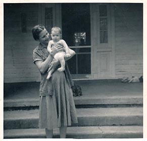 Lillie Margaret Hopkins McHann. 20, holding son, David. She is pregnant with Sonia Faye. 1938.