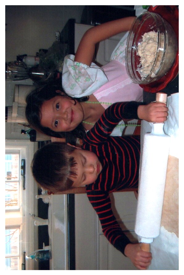 2007 Feb-Aug30 Mardie and Ethan baking bacon fat gingersnaps.
