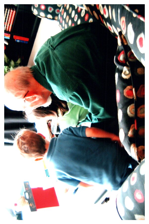 2007 Feb-Aug17 Etthan, Mel and Emily. Mel telling super hero stories.