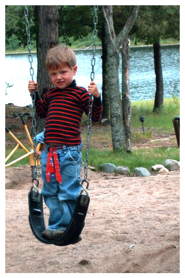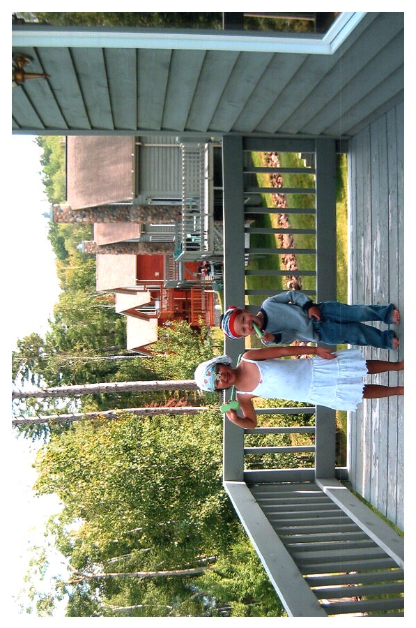 2007 Feb-Aug90 Emily and Ethan, post talent show. Ethan did a cartwheel. Giant Ridge reunion, Biwabik, MN