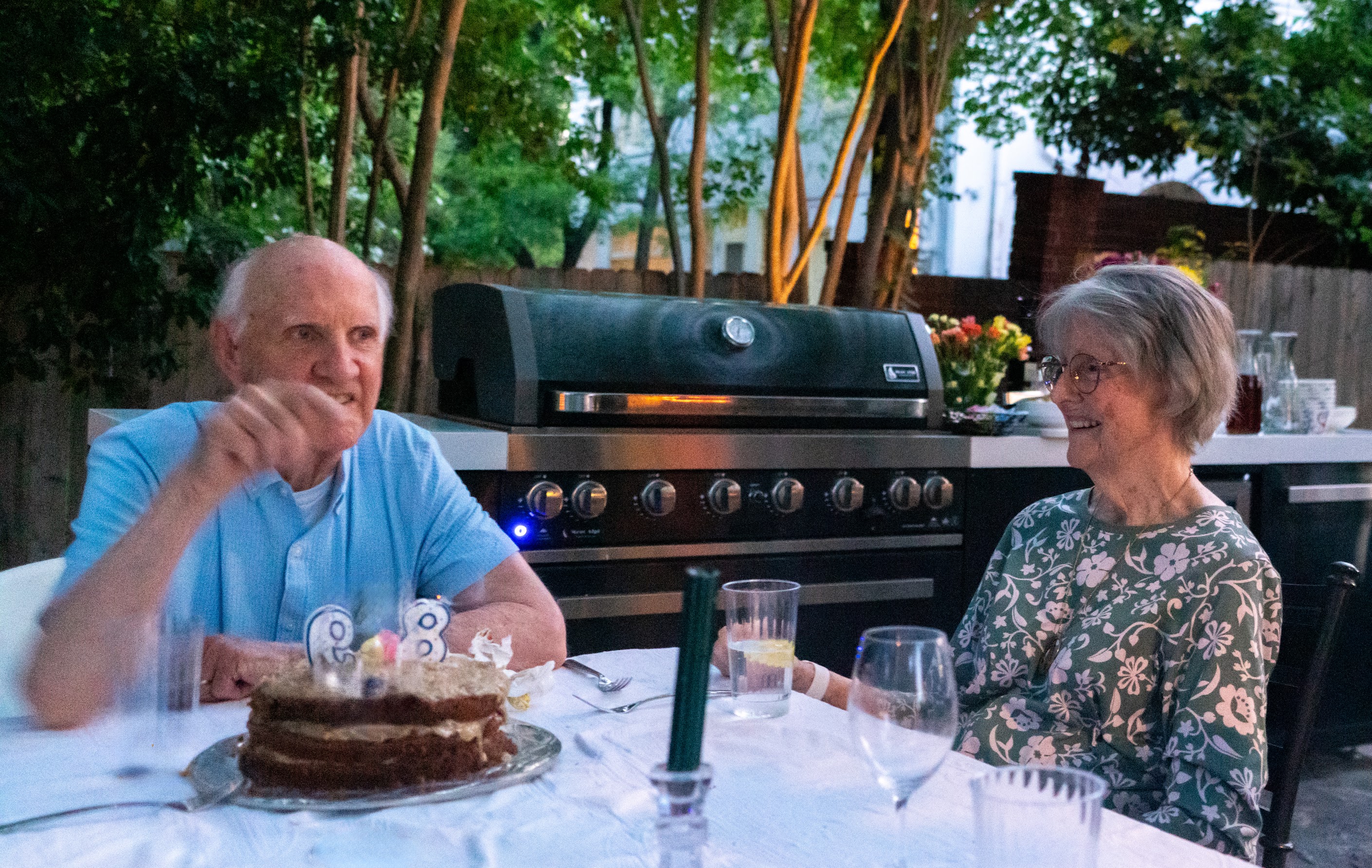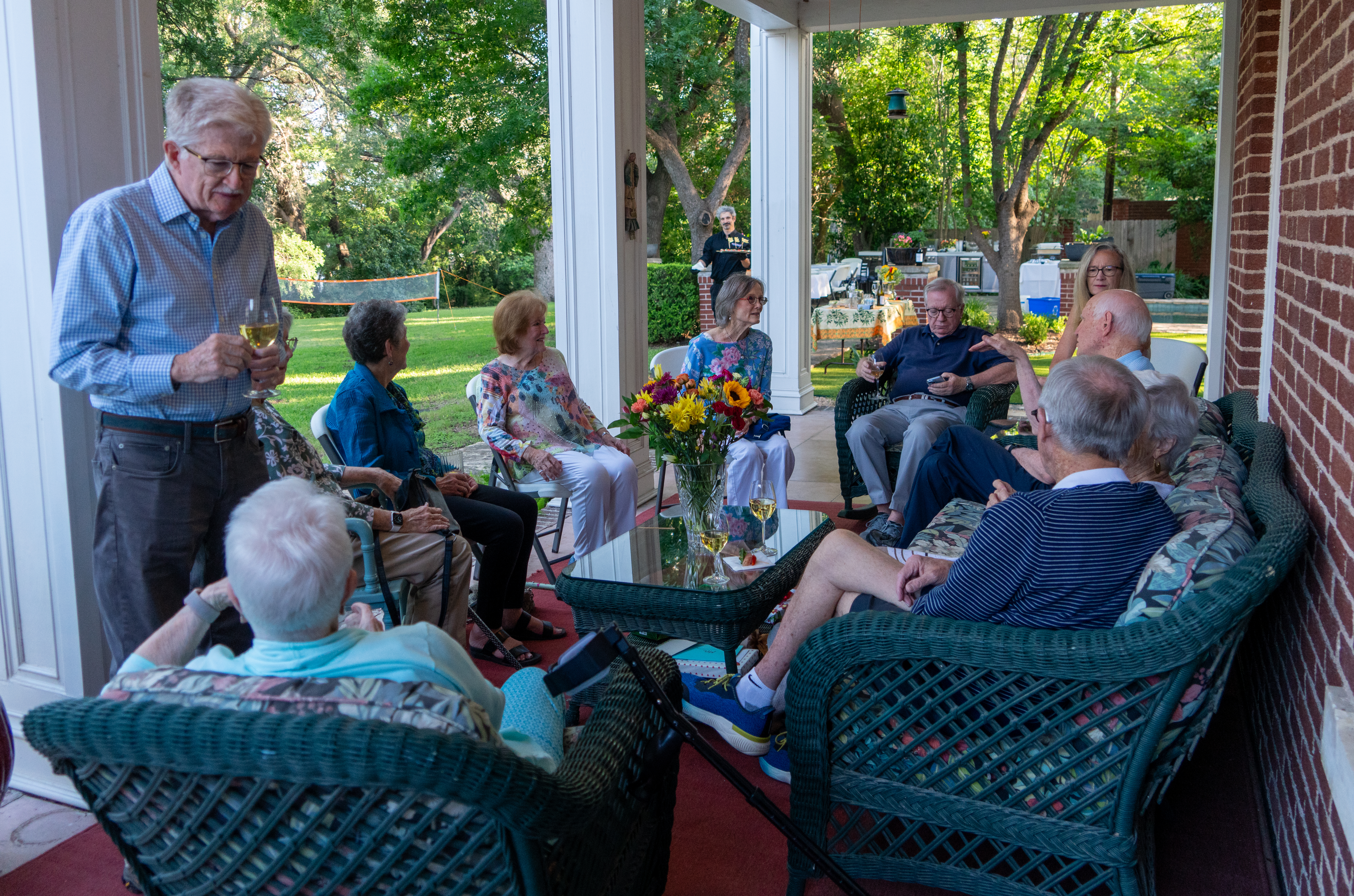 On May 11, 2025, Mel Oakes, a charter member of the group turned 89. Kate Monahan and Mike Mullen threw him a birthday party and generously invited a number of his friends. The photos below, taken by Kate Monahan, (except for one by Pat Oakes), are from that party. |