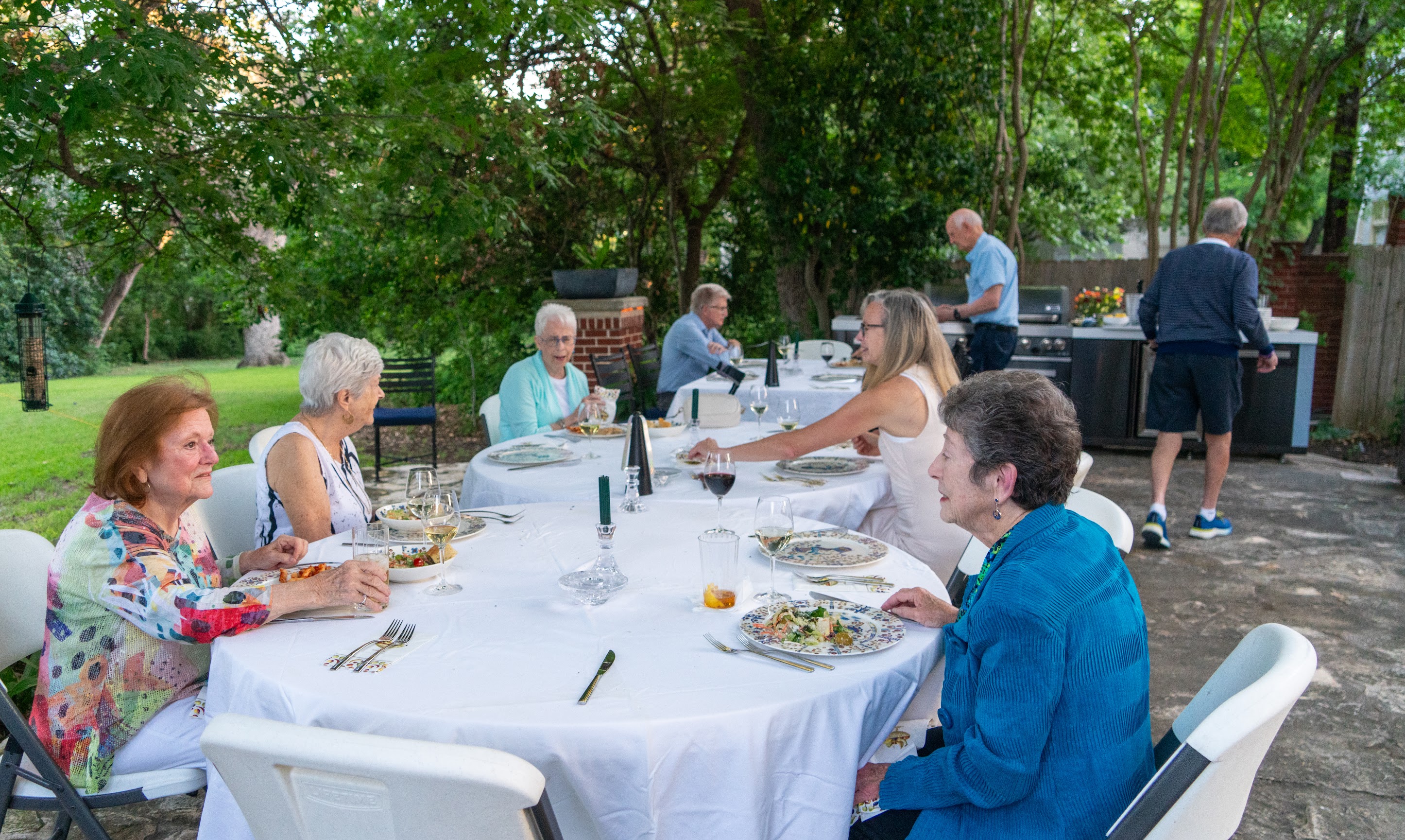 6/11/95 Early Tennis Group and Spouses. Mel and Pat, John and Eleanor Towery, Garry and Judy Cole, Gordon and Janie Flack—a farewell dinner party for the Coles. Janie was the only spouse that played with the group.