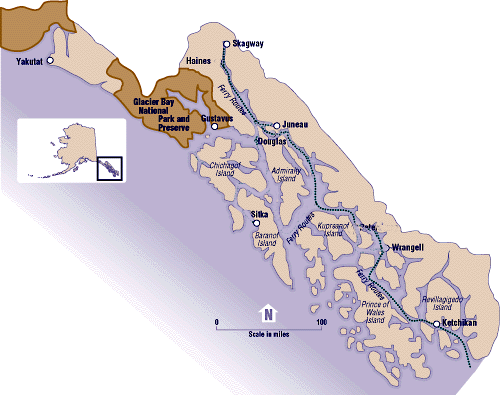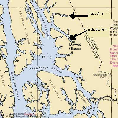 Endicott Arm Fjord and Dawes Glacier, between Ketchikan and Juneau.The glacier lies at the end of Endicott Arm.