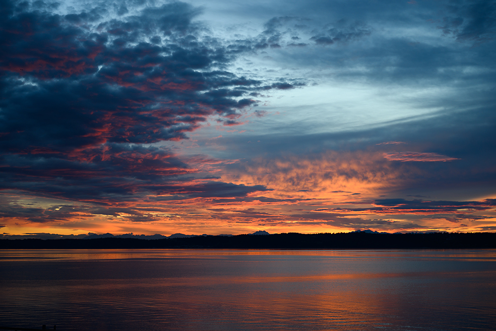 Sunset over Puget Sound. The Sarmas rented a house on the sound before the cruise departure.