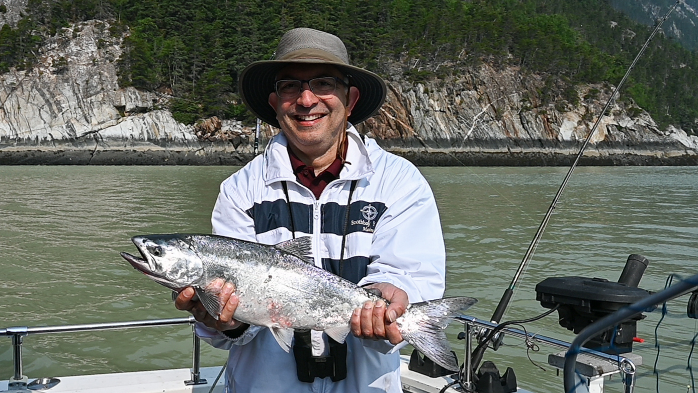 Firoz and his salmon, catch and release.
