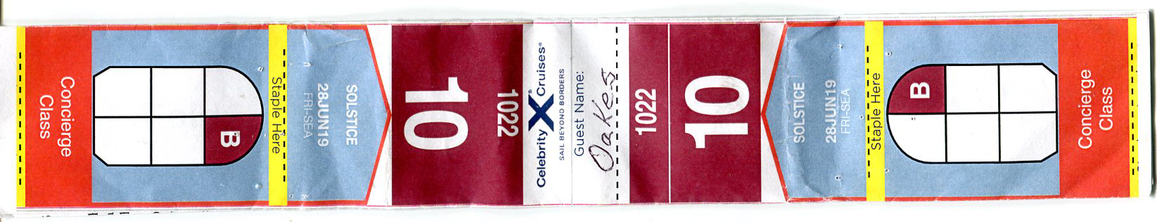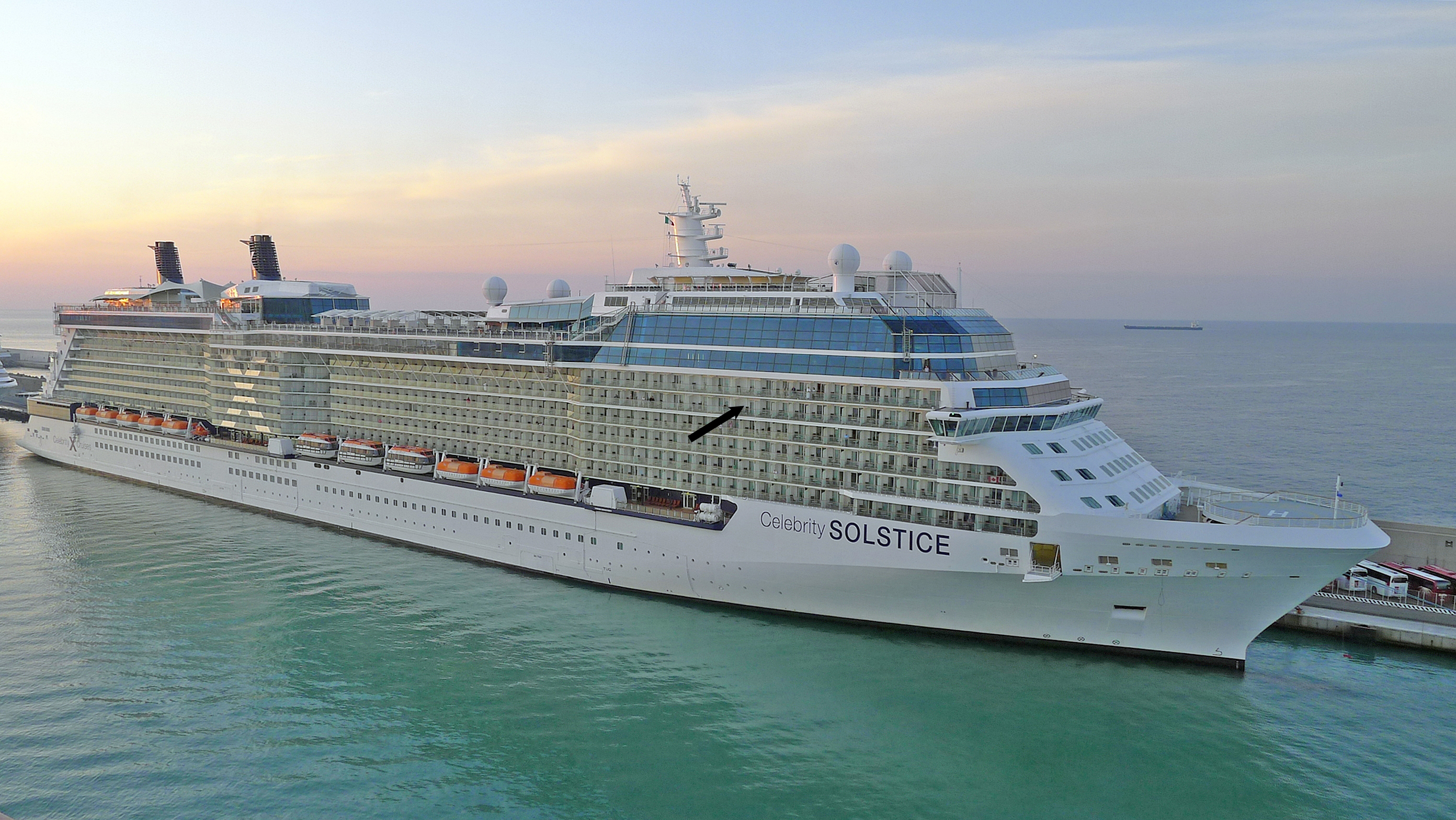 Celebrity Cruise Ship Solstice. Pat and Mel's cabin shown with arrow.