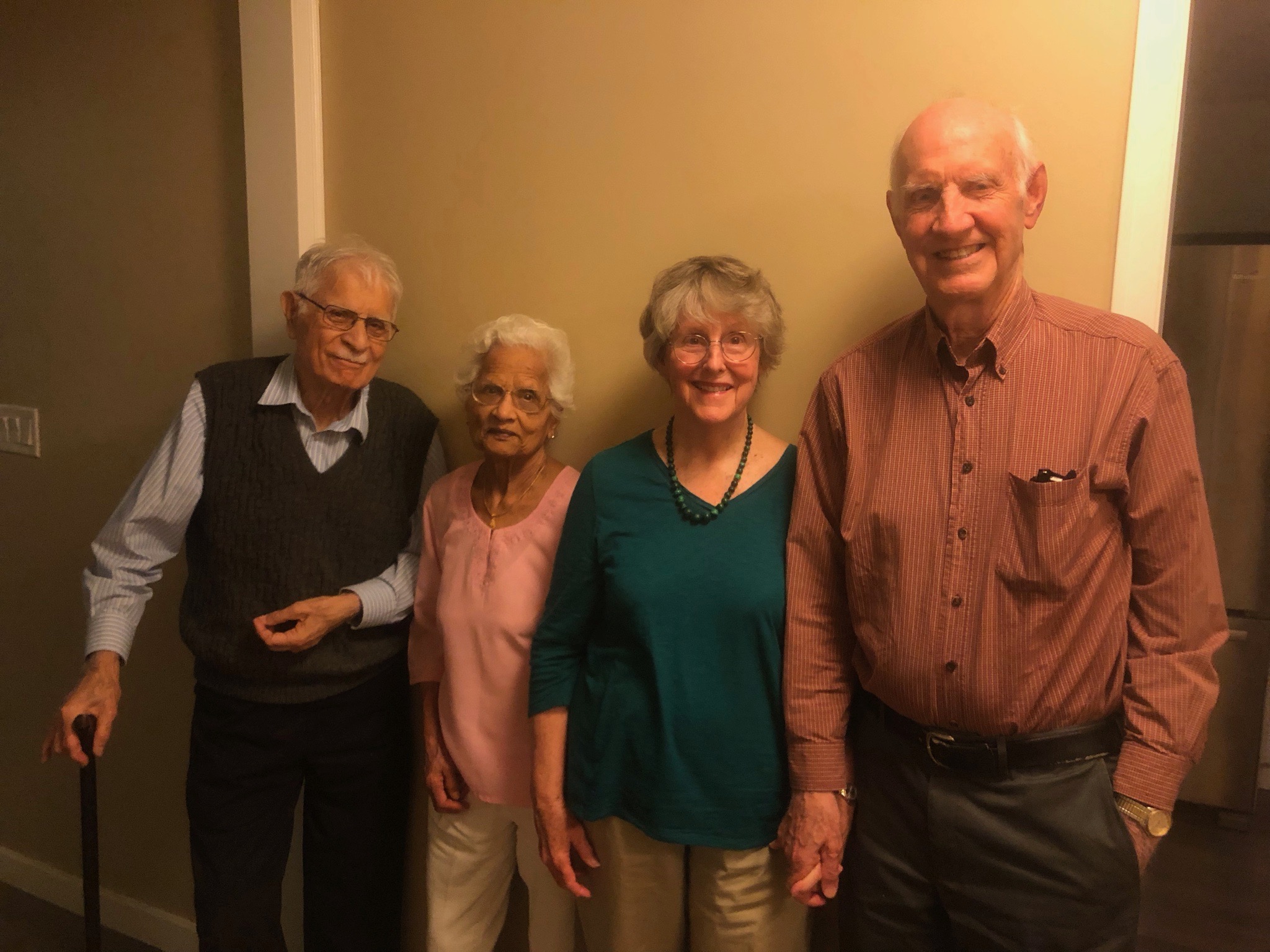 Dinner with friends in Victoria. Faqir C. Khanna, Raj Khanna, Pat Oakes and Mel Oakes. Faqir and Mel were graduate students in physics in 1958 at Florida State University, 61 years ago.