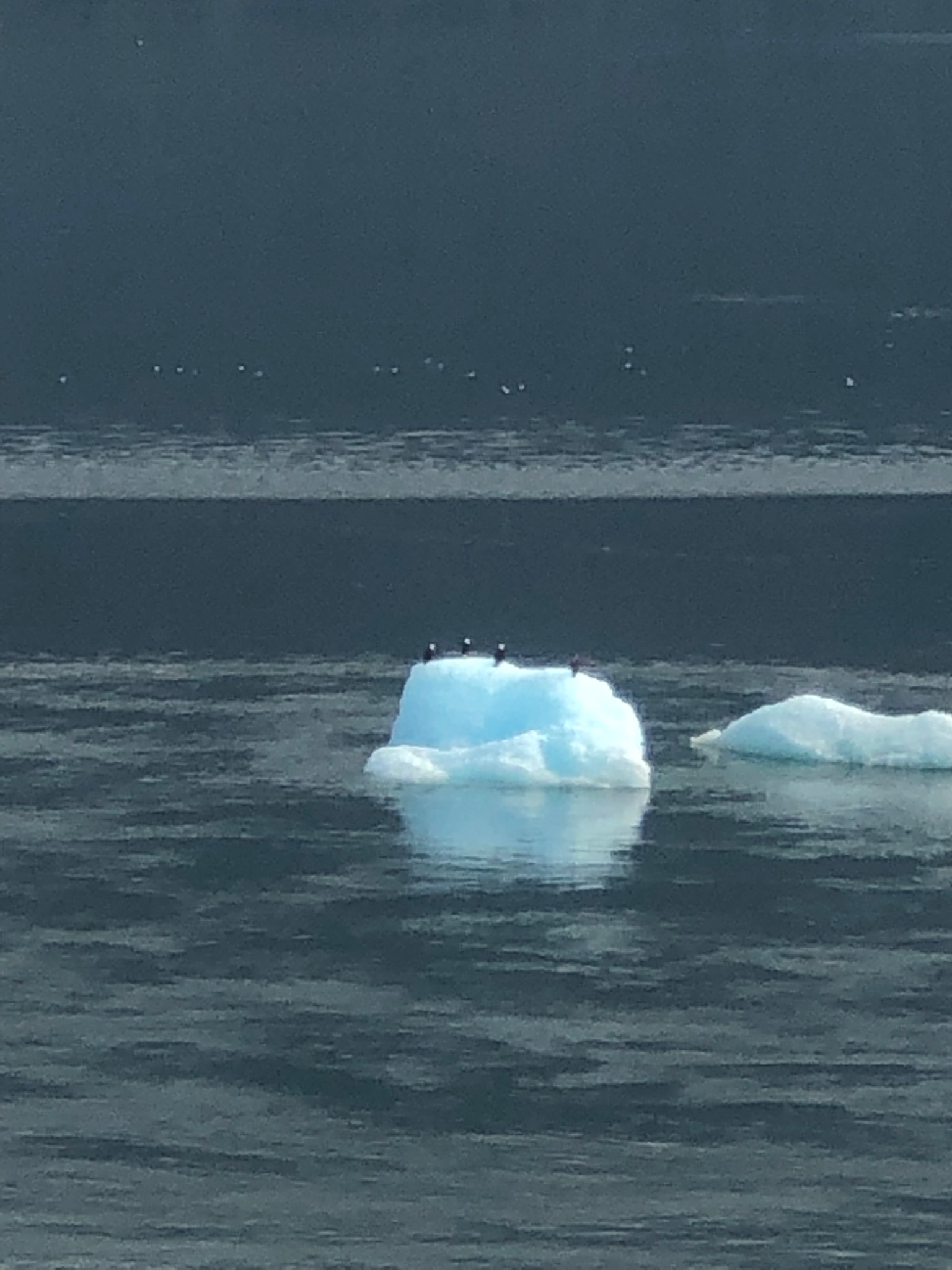 Four bald eagles on ice from Dawes Glacier