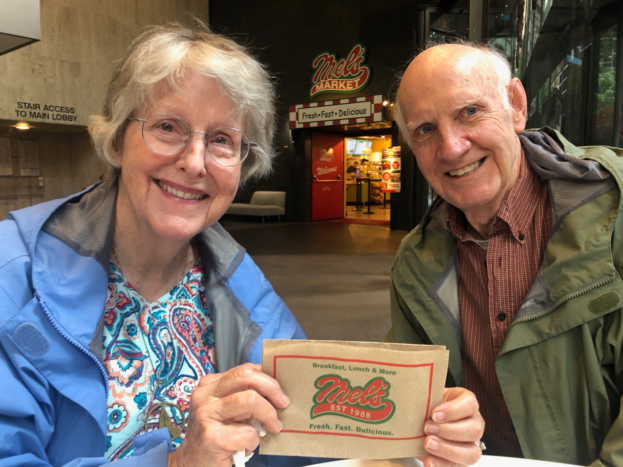 Pat's birthday breakfast with Mel at his market in Seattle.