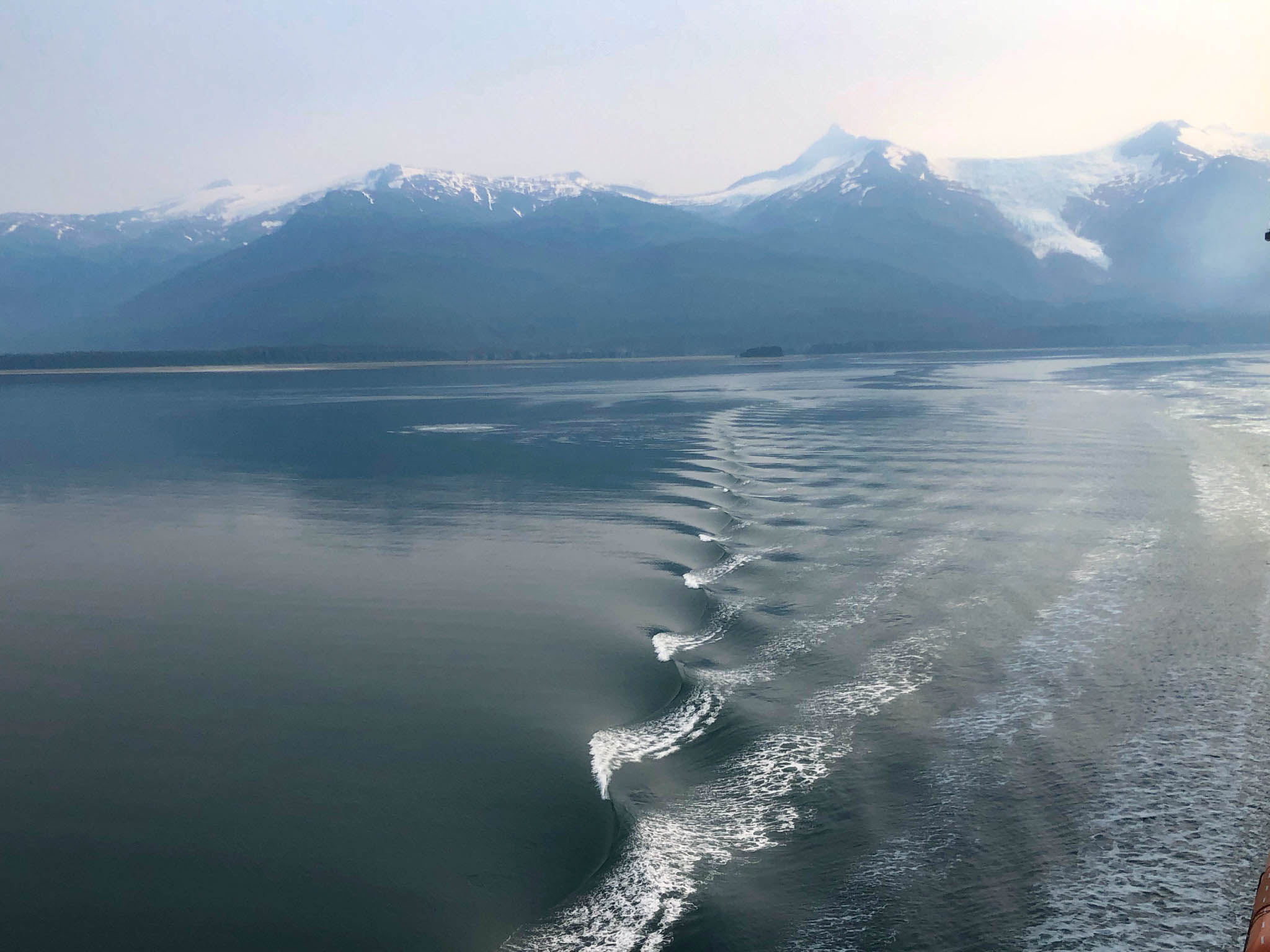 Mountains and ship's wake