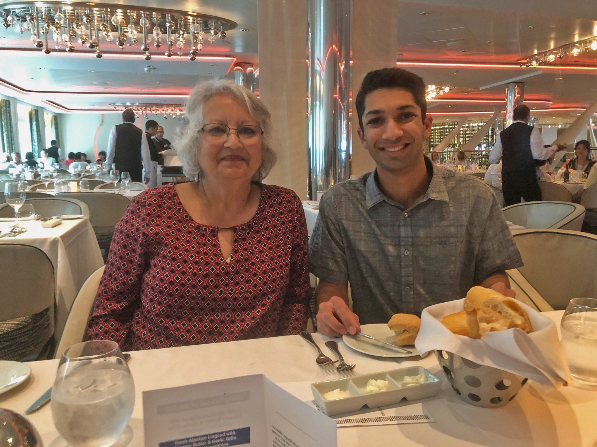 Early this year Amit Sarma contacted our daughter Sarah and generously suggested that Pat and I join their famlies in an Alaskan cruise. Since this would give us the opportunity to see Alaska and spend time with many of the Sarma family, we accepted. Sarah offered to come along and help. Her husband, Joe, was committed to a later reunion with his family and was unable to come. The Sarmas have been friends since 1977, when they lived one block away in Austin.