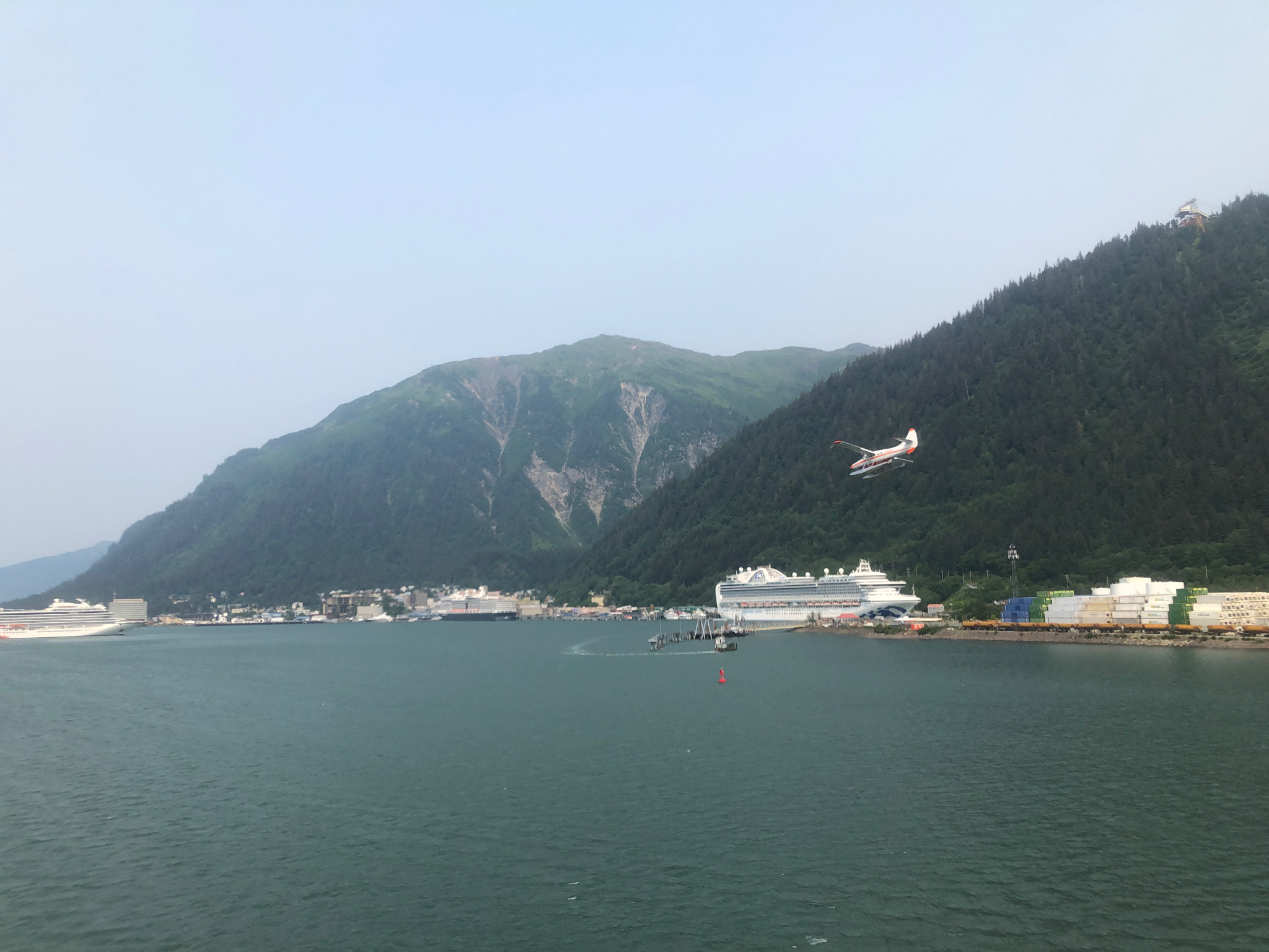 Port of Juneau, with large goverm,emt building ahead that includes Coast Guard and the tram up to the left. (Many thanks to Anne Fuller, resident of Juneau, who saw this picture which was erronously labeled Skagway. Anne emailed me the correction. Always appreciate corrections.)