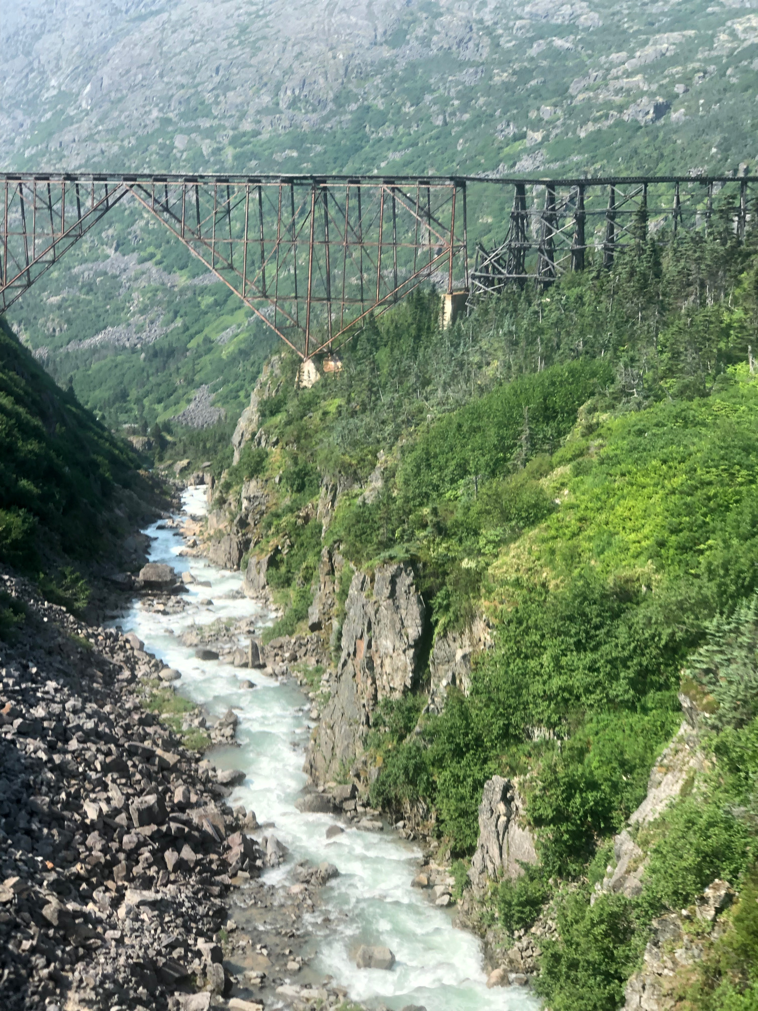 The Steel Cantilever Bridge. The steel bridge was begun in 1898 and finished in the winter of 1901. It was at the time the highest steel cantilever structure in the world. It served faithfully until 1969 when the new 18A bridge and tunnel were built to handle longer and heavier trains of zinc, silver and lead concentrates headed for the Skagway docks.White Pass Scenic Railway, Skagway. For more information see: History of WP & Yukon Railway