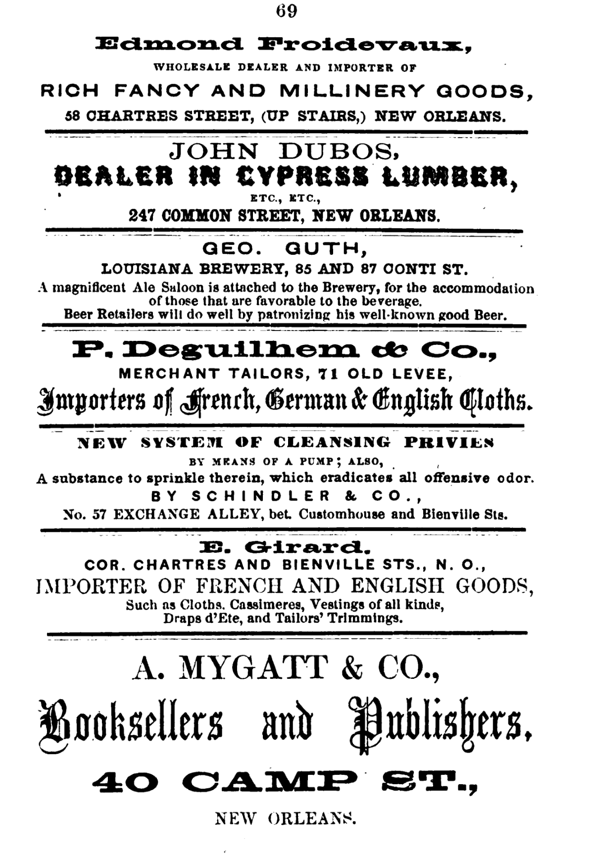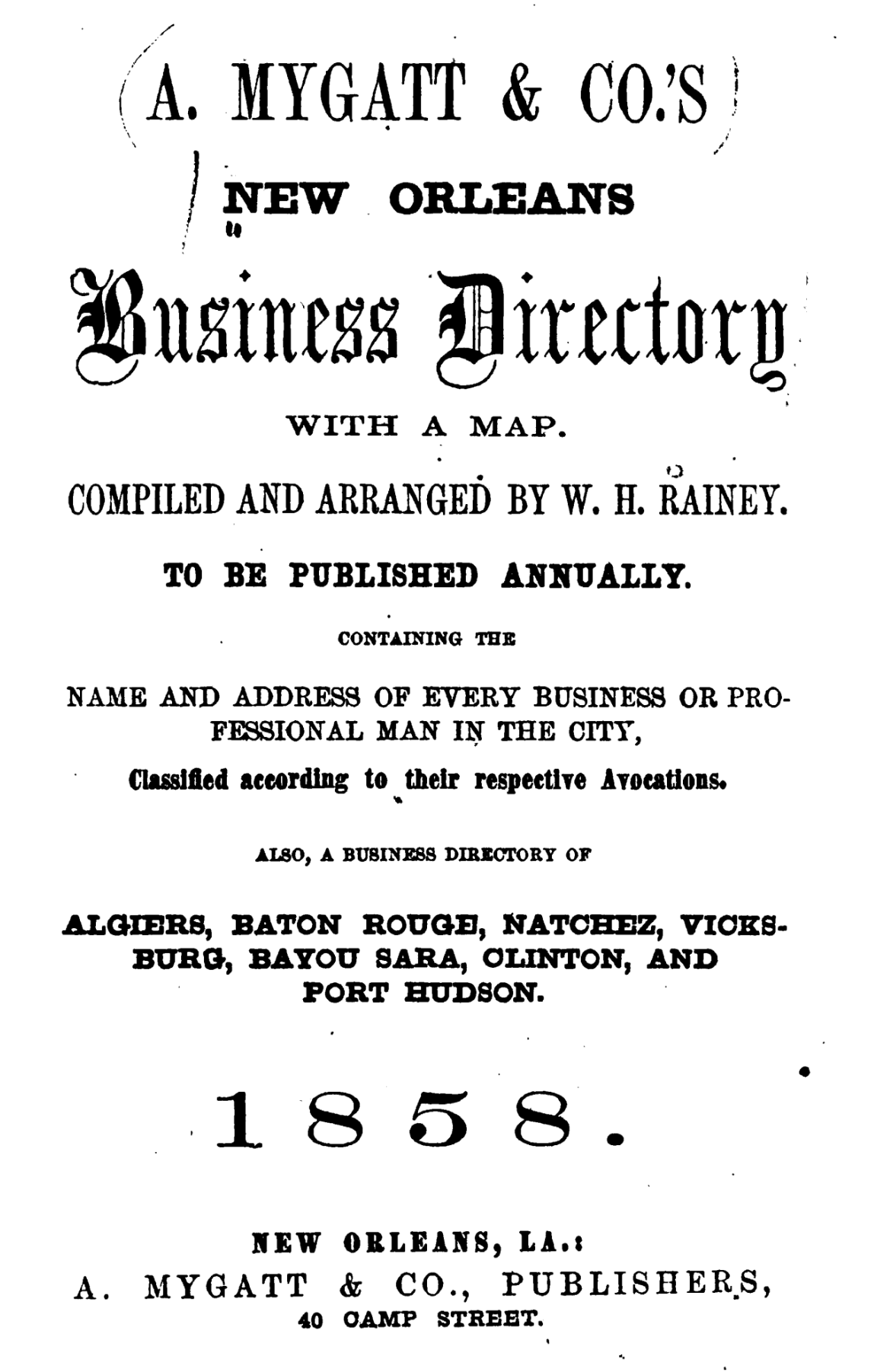 By 1858, Mygatt delivers on his promise to publish a directory for New Orleans. Below are some pages from that directory.