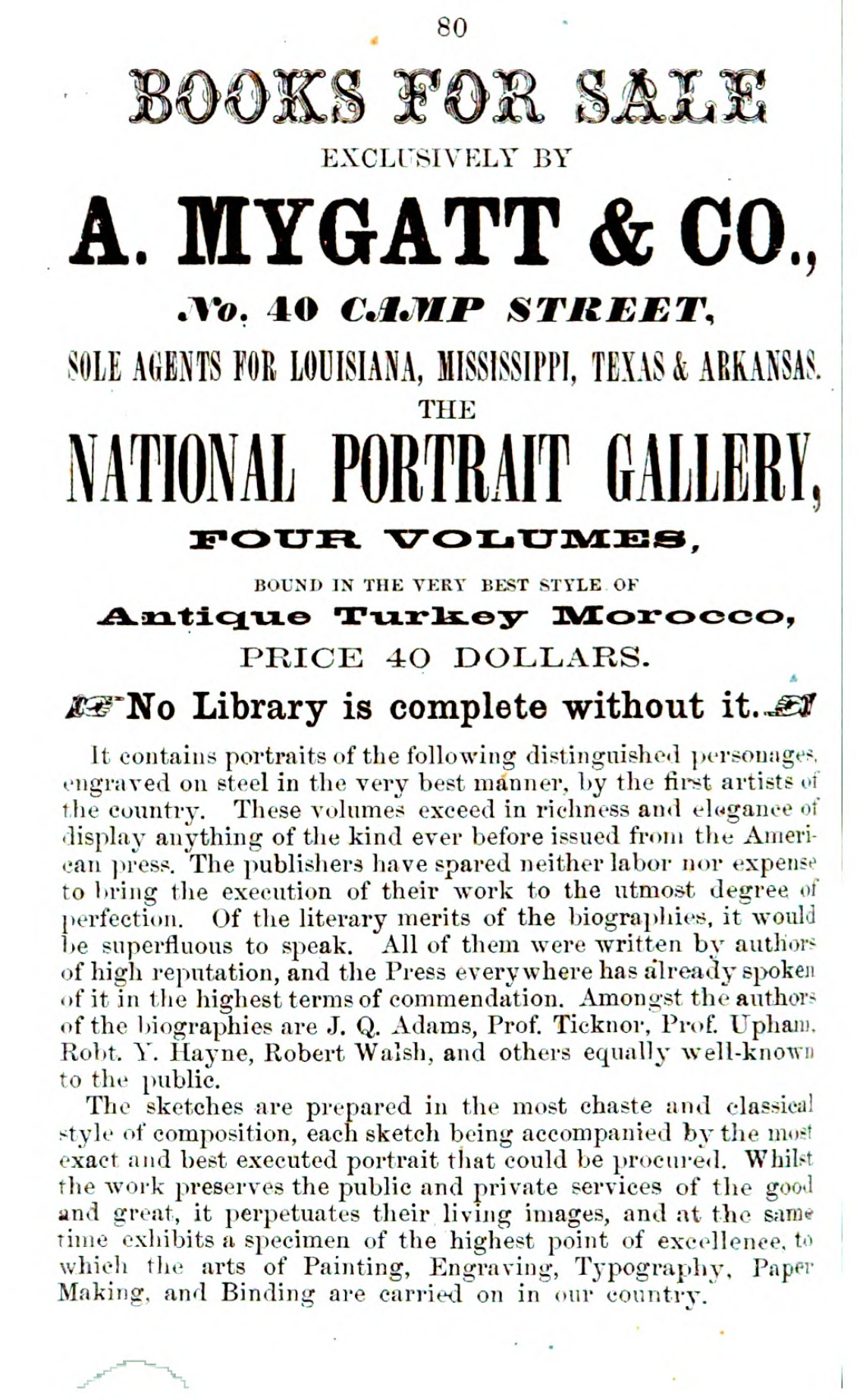 In February 17, 1844, The Courier-Journal (Louisville, KY), Mygatt is soliciting "2 or 3 efficient Agents to solicit subscriptions for popular standard works. Iquire at the Ormsby House Of Alston Mygatt." These subscriptions likely include the works of Jared Sparks on George Washington and Benjamin Franklin.