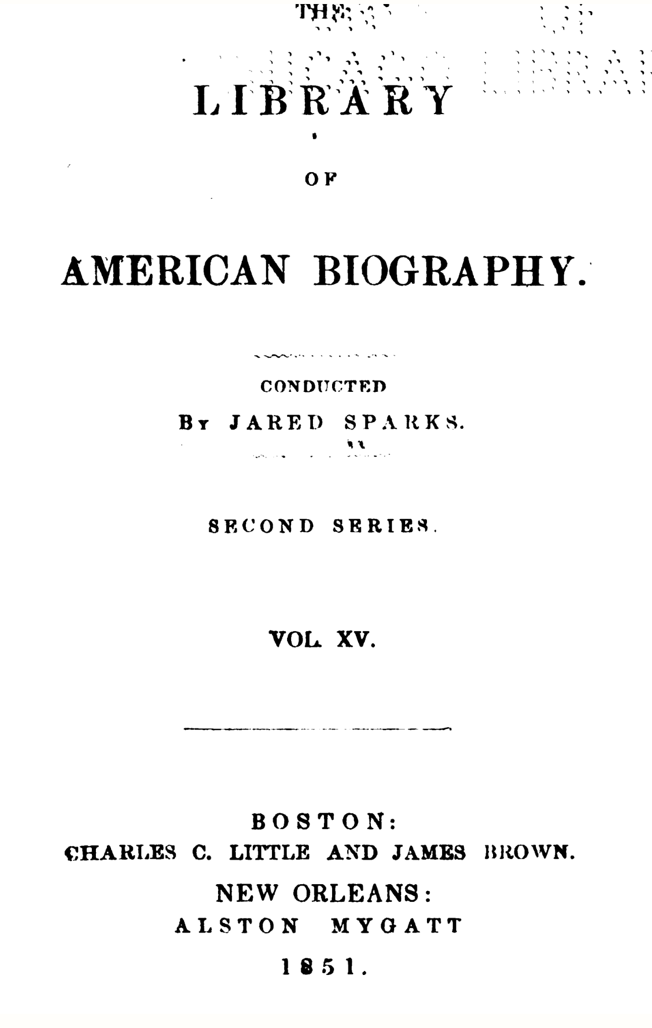 In 1848," The Library of American Biography." Conducted by J. Sparks. 2 ser.] Author SPARKS, Jared. Edition [Another edition of vol. 1-10.] Published New York : Harper & Bros, for Alston Mygatt 1848-51
