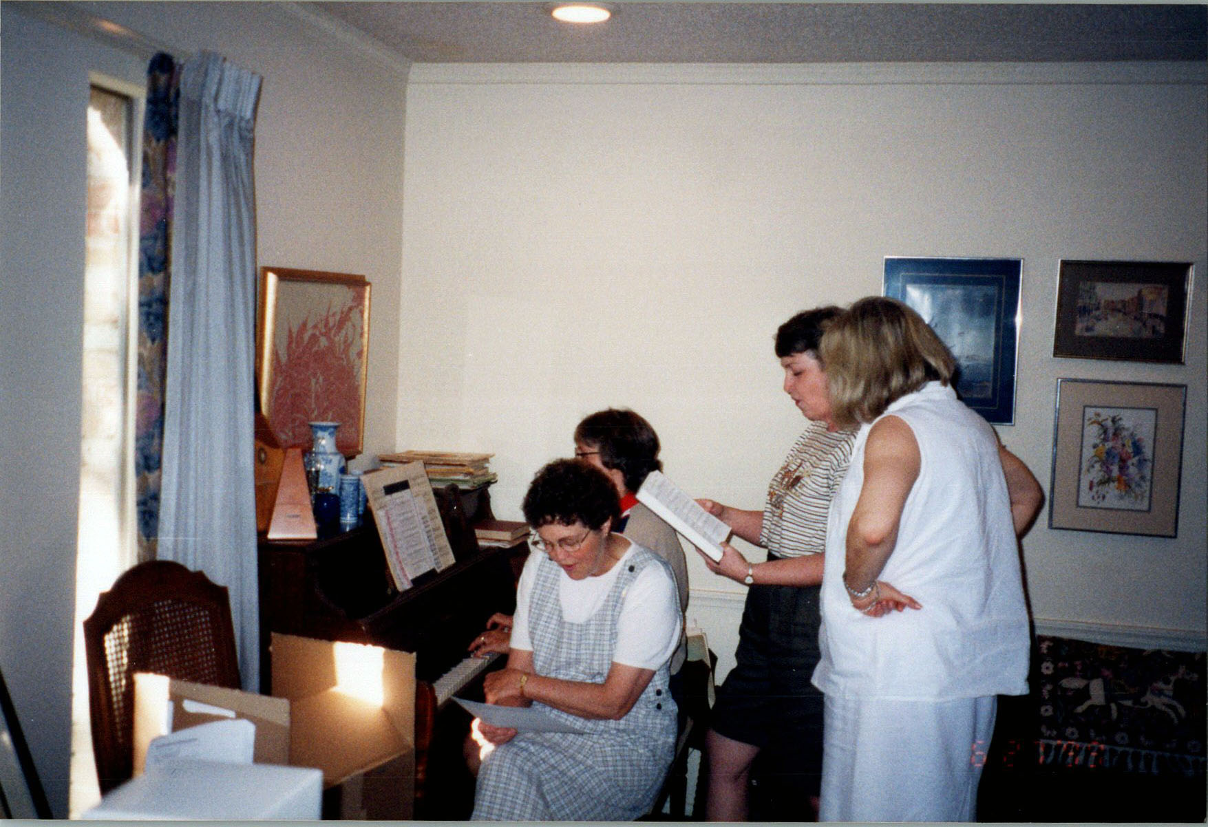 Rehersal. Sarah, Mardie, Pat, Beth, Mel, Rollin Russell, Eugene and John Towery.