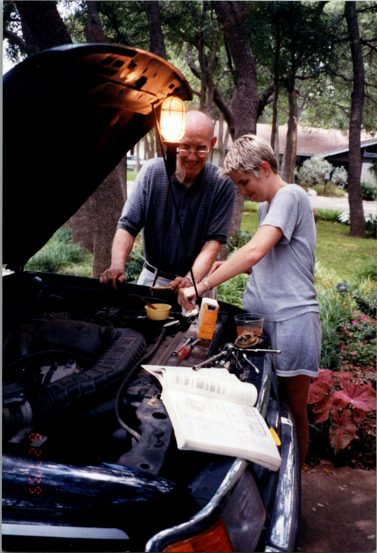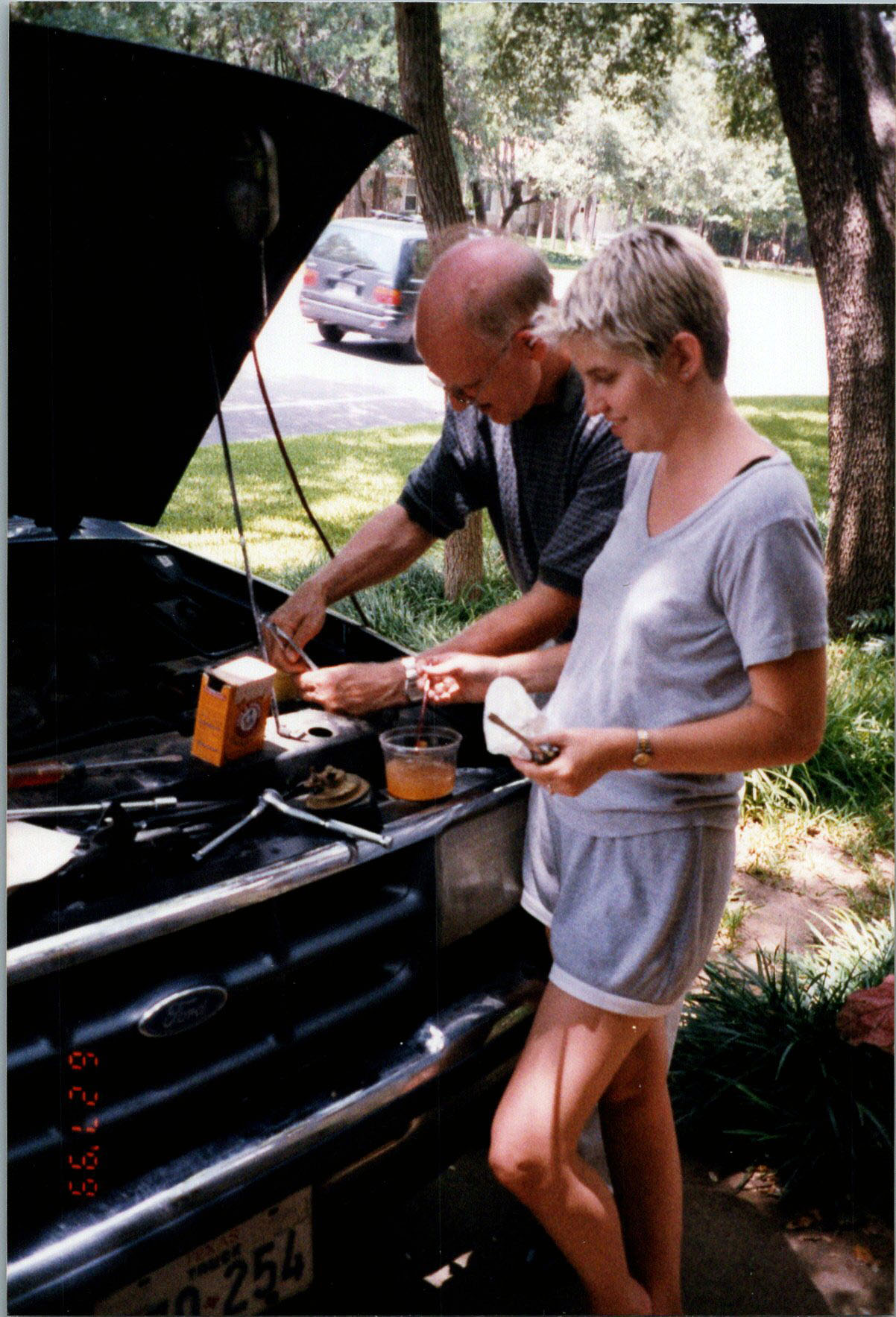 Mel and Pat Oakes, battery replacement on Mardie's CRV.