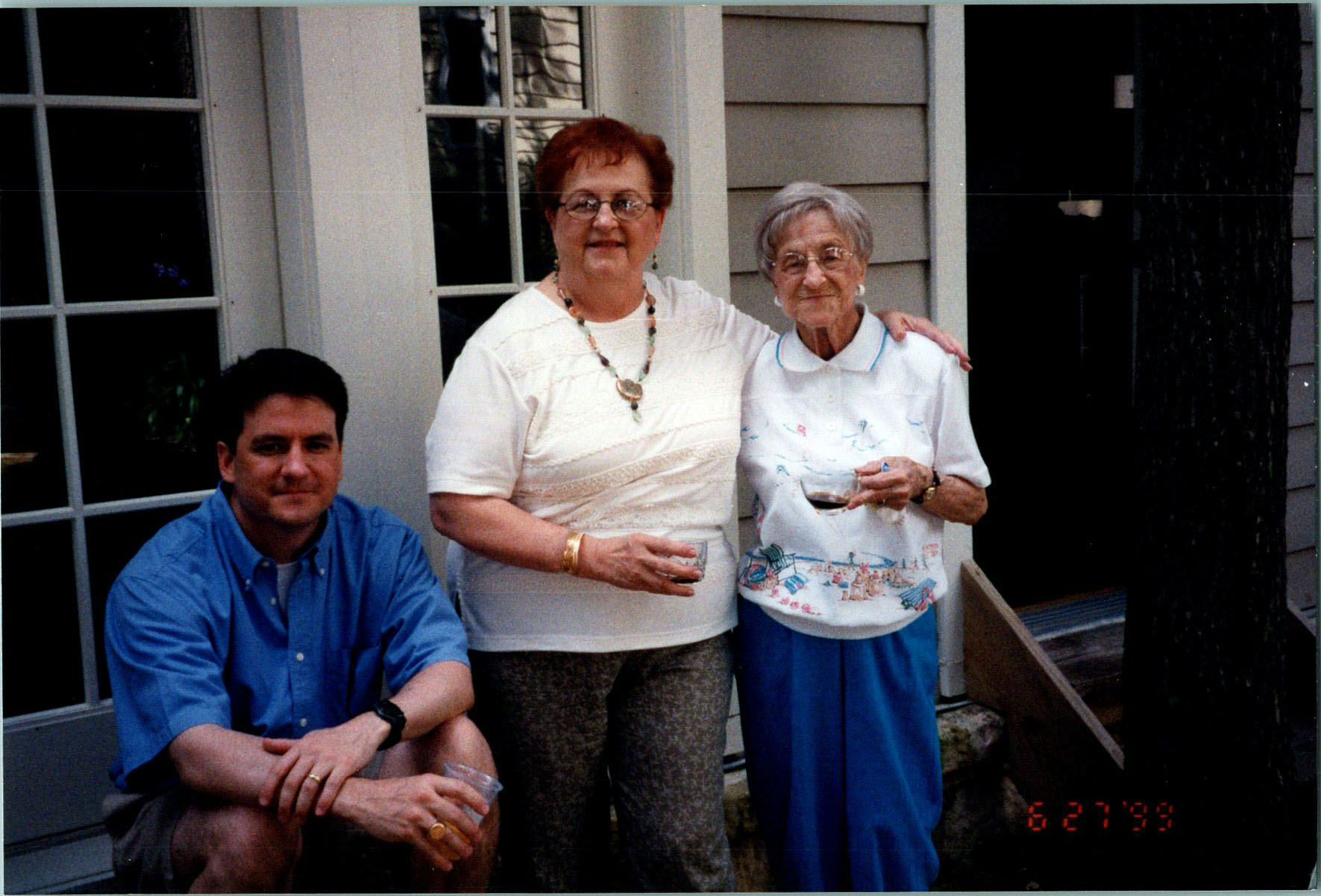 Mel and Pat Oakes and Harris St. Clair, Pat's birthday, 6/28/1999