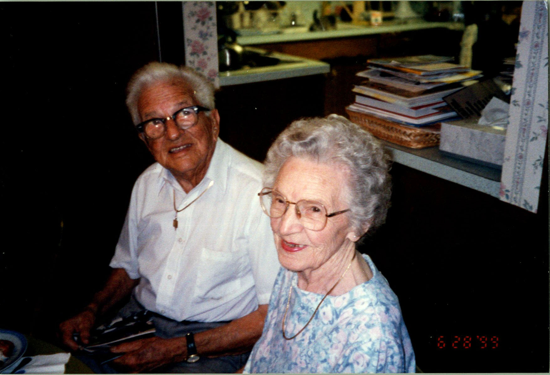 Harris and Irene St Clair, Pat's birthday, 6/28/1999