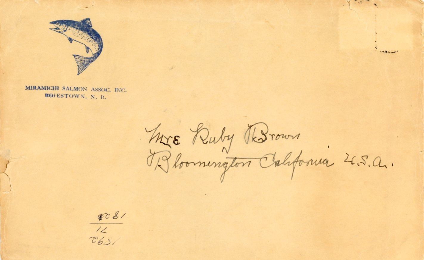 Wild Bill and Ruby exchanged letters for a number of years. Below are scans of those we have found. Bill was married to Mary Elizabeth "Lizzie" Gordon. Wild Bill was a guide and outdoorsman. He was born March 23, 1881, near Stanley, York County, New Brunswick. He died September 28, 1966 in Nashwaak, NB. Ruby Emeline Benson Brown was born April 17, 1894 in Plymouth, MA and she died August 23, 1977, in Riverside, CA. She held a variety of jobs including Avon saleswoman. She married Harold Foster Brown in 1912. They were divorced by the time these letters were written.