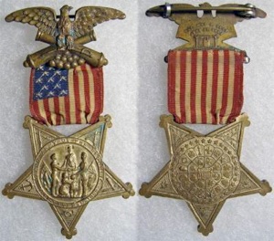 William Henry Bliss in the above photos appears to be wearing the Grand Army of the Republic Medal. The Grand Army of the Republic (GAR) was a fraternal organization composed of veterans of the Union Army who served in the American Civil War. Founded in 1866 in Decatur, Illinois, it was dissolved in 1956 when its last member died. Linking men through their experience of the war, the GAR became among the first organized advocacy groups in American politics, supporting voting rights for black veterans, lobbying the US Congress to establish veterans' pensions, and supporting Republican political candidates. Its peak of membership at more than 400,000 was in 1890, a high point of Civil War commemorative ceremonies. It was succeeded by the Sons of Union Veterans of the Civil War (SUVCW), composed of male descendants of Union veterans.