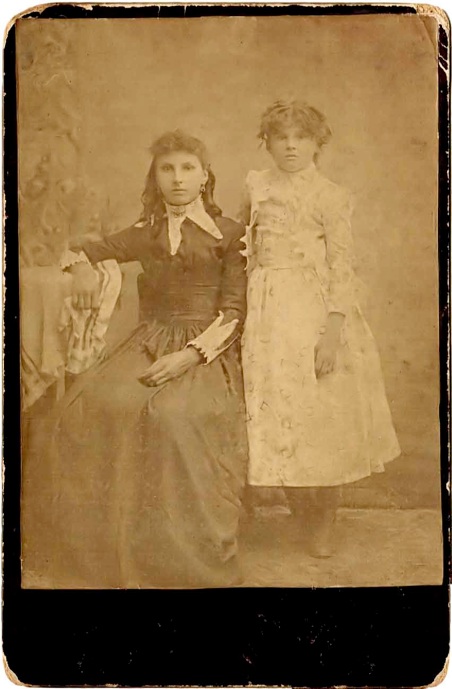 Ada and Fanny Bliss, daughters of William Henry Albert and Elizabeth Camellia Bellinger Bliss, ca. 1885. Studio appears to be same as portrait of William and Camellia on page. Ages and clothing would suggest that pictures taken at the same time. |