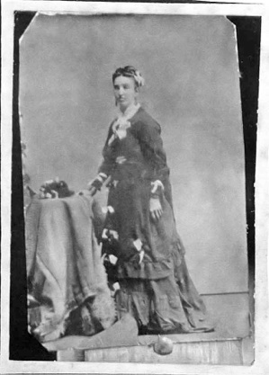 This is a cabinet card, probably late 19th century. The picture of Ada and Fanny and of their parents William and Camellia are all taken in the same studio. I have extracted the information from all three. Martha Boone suggests that this is Fanny. When the later picture at right is placed beside it I think the likeness and hair is striking. She is a bit younger in the picture at left. She is wearing boots in both pictures. I vote with Martha. Same studio is also strongly suggestive. |