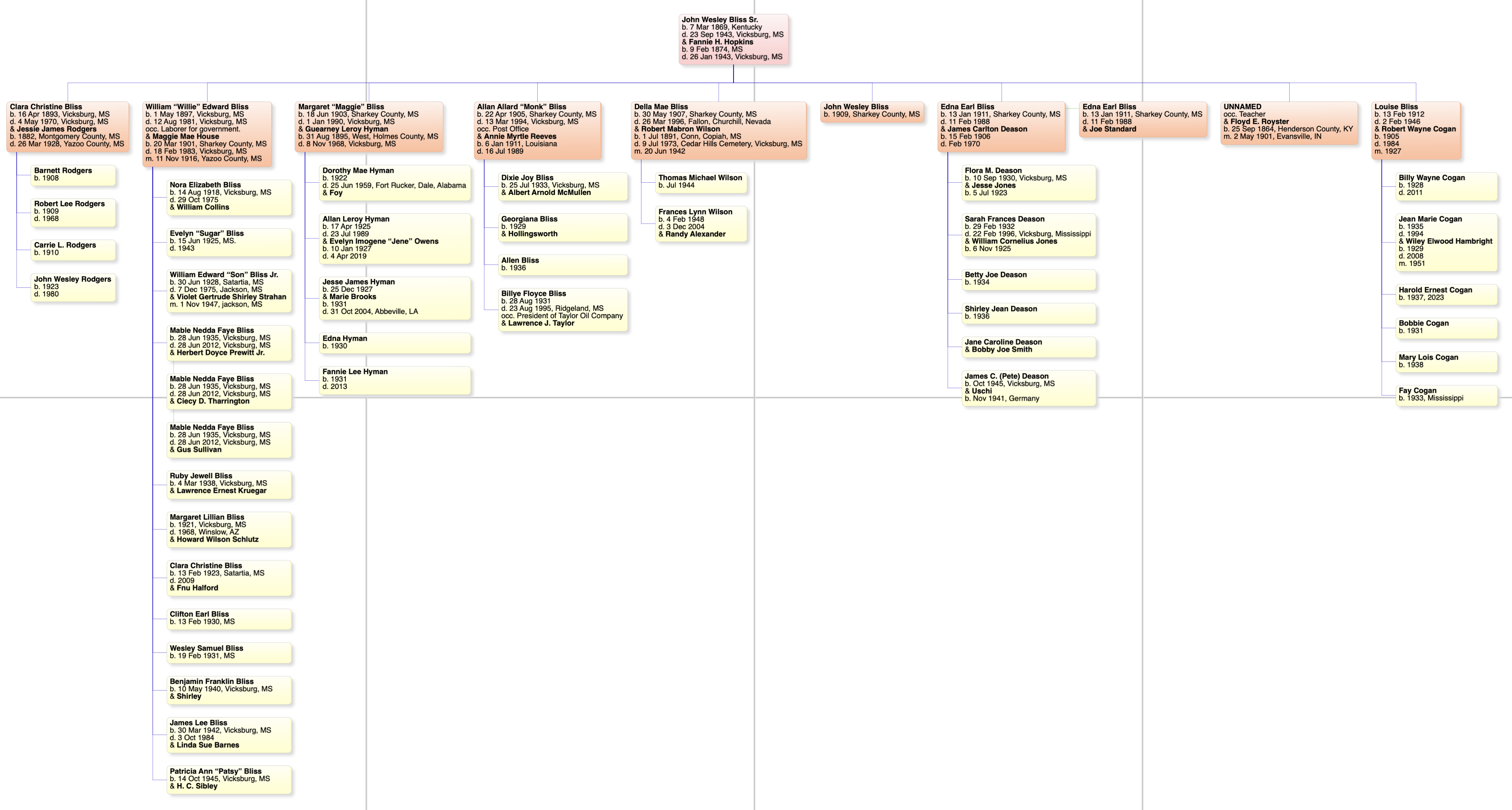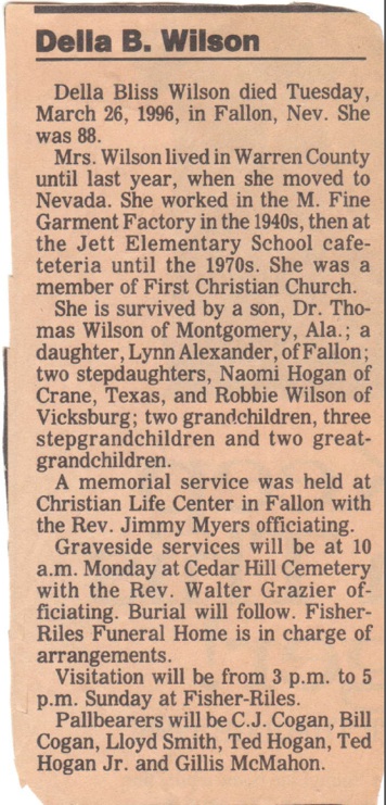 Billy Wayne Cogan (1928-2011), son of Robert and Louise Bliss Cogan. Margaret Lillian Bliss (1921-1968) daughter of William Edward "Willie" and Maggie Mae House Bliss. |