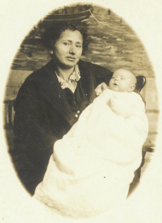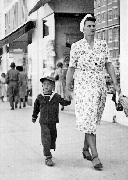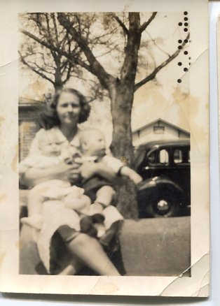 Della Mae Bliss Wilson (1907-1996) and son Thomat Michael , San Angelo, TX 1947. Della, daughter of of John Wesley and Fannie Hopkins, married Robert Mabron Wilson. (Contributed by Thomas Michael Wilson.) |