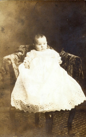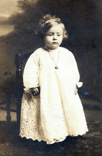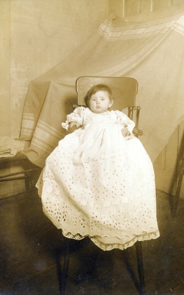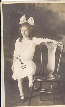 Maggie Leist (b 1903), same background as photo of Oliver Bliss Tucker at right and of William Aca Bliss above. ca. 1913. |