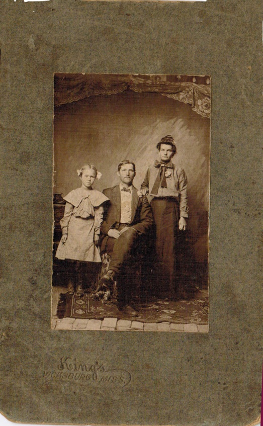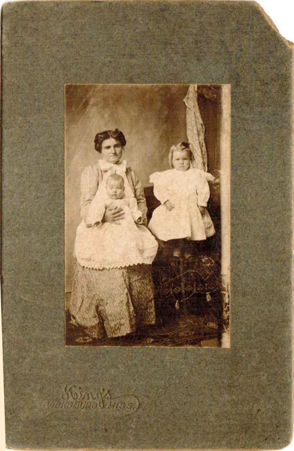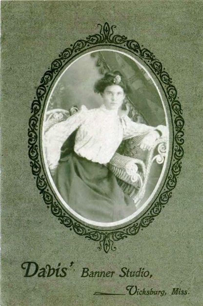 Picture taken in same studio as picture of family at left. King’s Studio in Vicksburg, MS, rug is same. Likely taken at same time as picture on left. However if it is Lou Etta in both pictures then they are separated by over 25 years, highly unlikely. I think the woman looks like woman below |