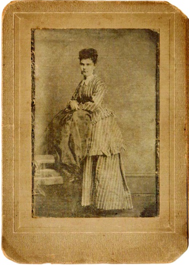Originally identified as Fannie Bliss Hart, wife of Will Hart. However LouAnn Cameron suggested the photo was strikingly similar to the chalk drawing of Susan Jennings Bliss. I think the comparison confirms her suggestion. Chalk drawing may be based on this tintype. |