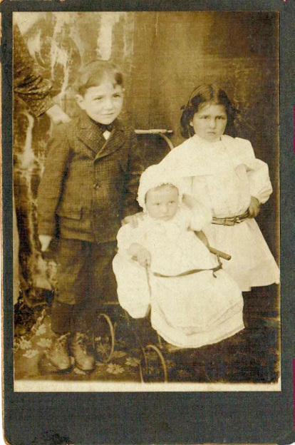 Leila Penley’s Children, Frank F. (1904-?), Leila A. (1906-?) & Edna M. (1909-?). Girl in this picture has light hair, Leila at right has dark hair. Not sure which is Leila. |