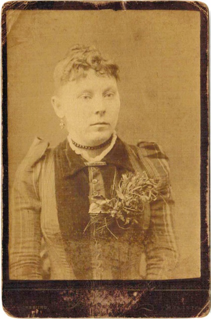Picture from Clementine Clayton Bliss files. Looks like younger version of Clementine. I think this woman has blue or green eyes,. ) |