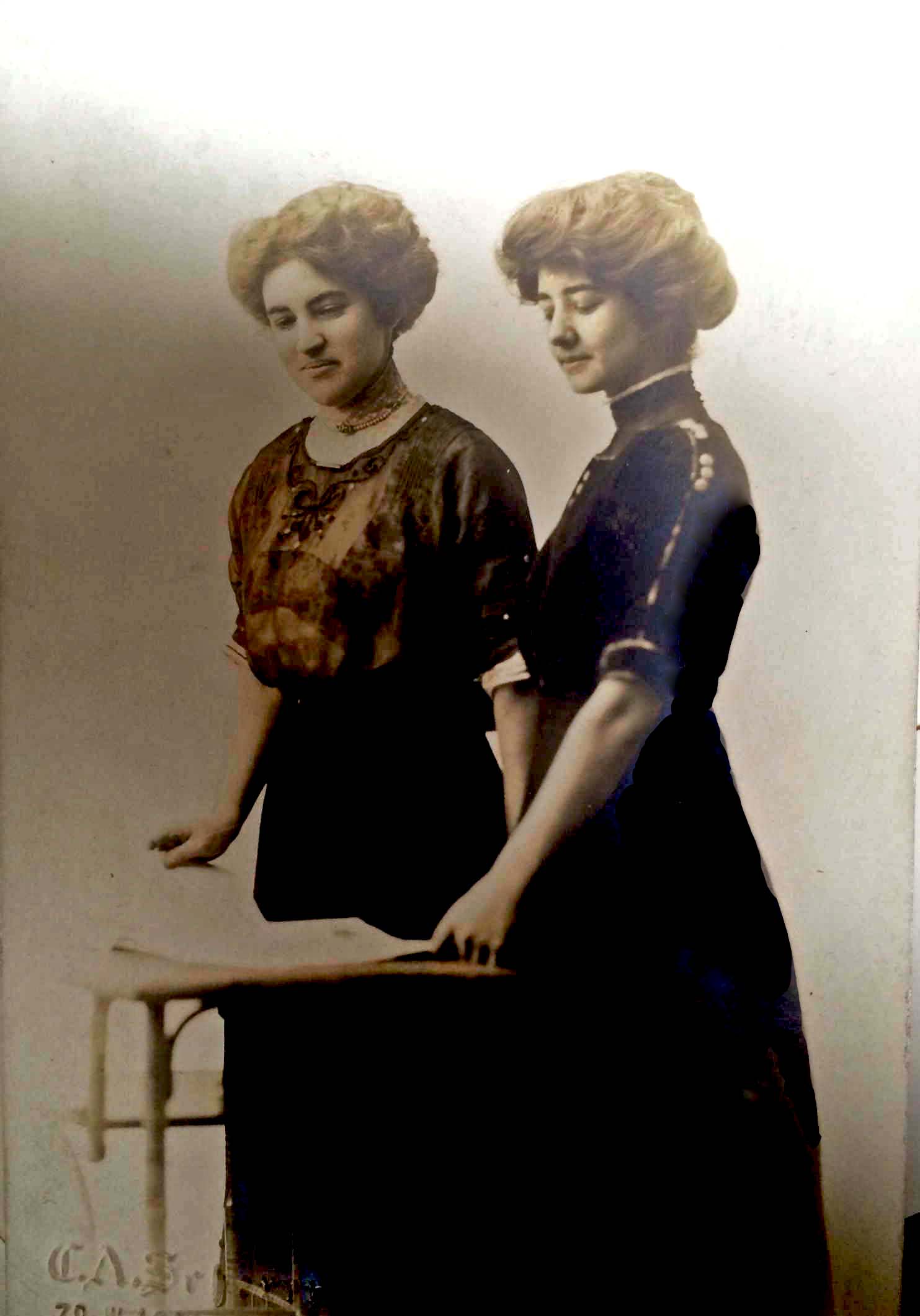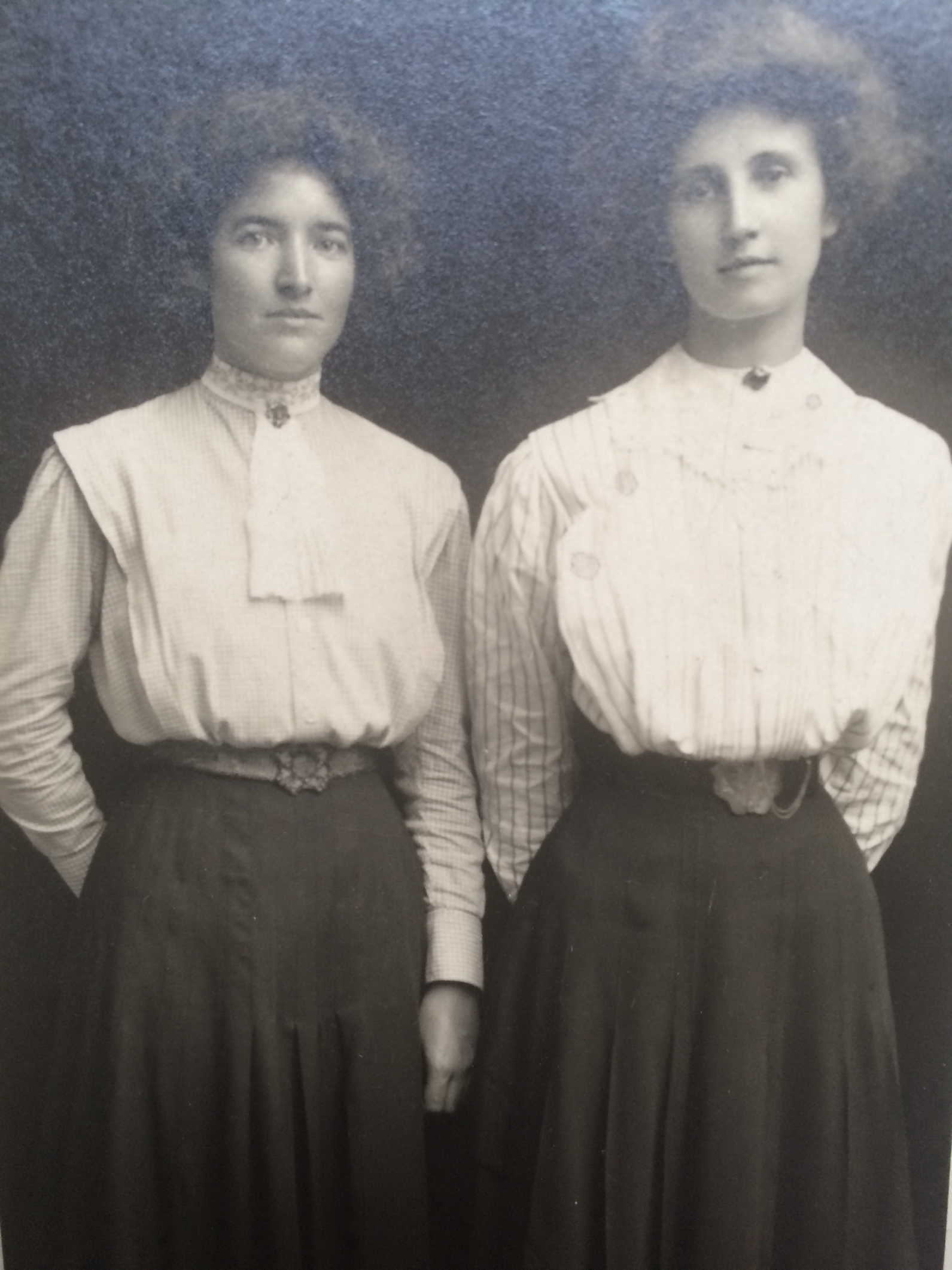 Phoebe McNeely (L) and Netta Macklin (third cousin). Photo taken Sept.2, 1910 at Ashtabula Harbor. |