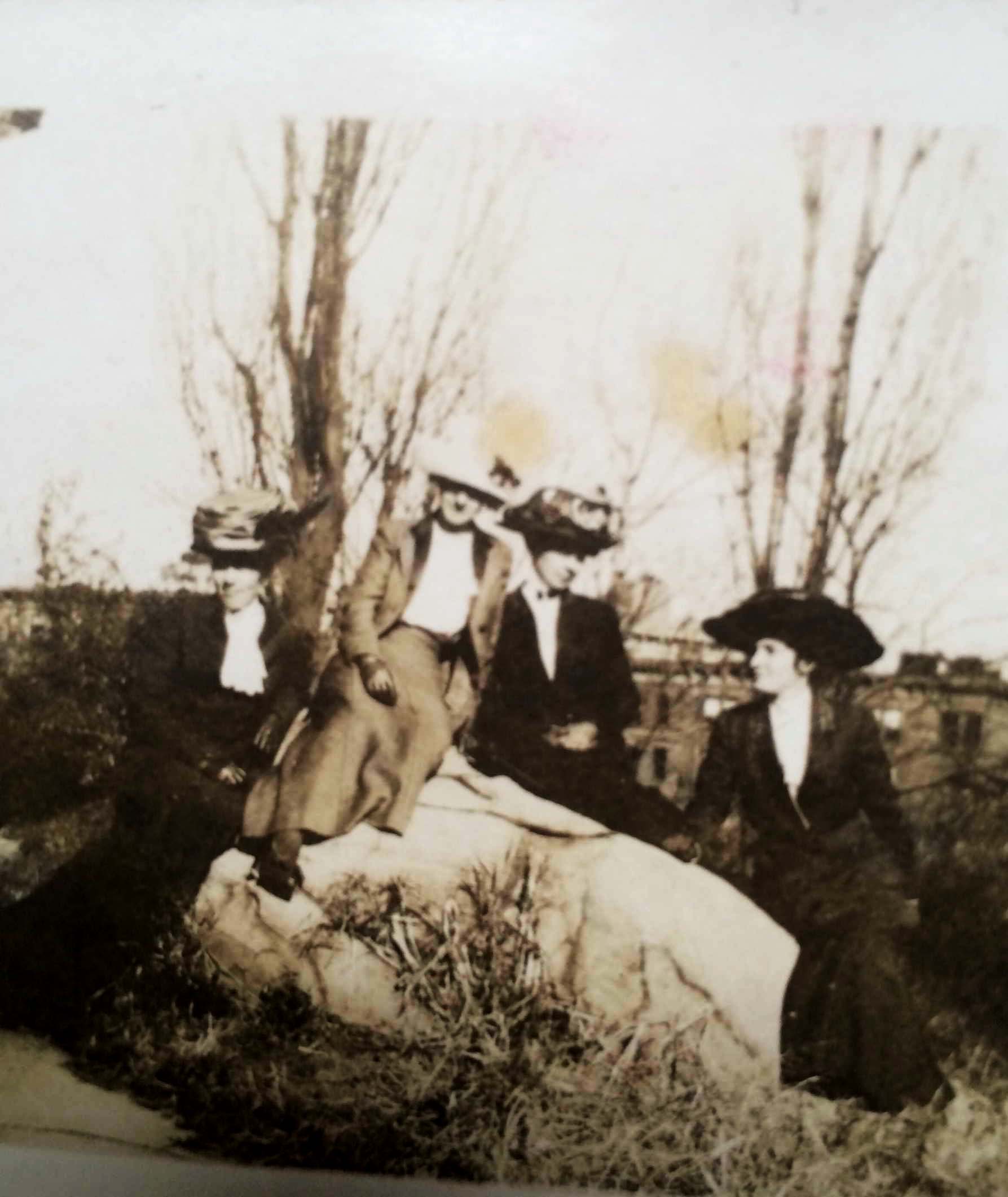 A picture in 1908 at the Bronx Park in New York City. The picture is of Fanny (L). A Miss Kirk, Phoebe and Bessie. |