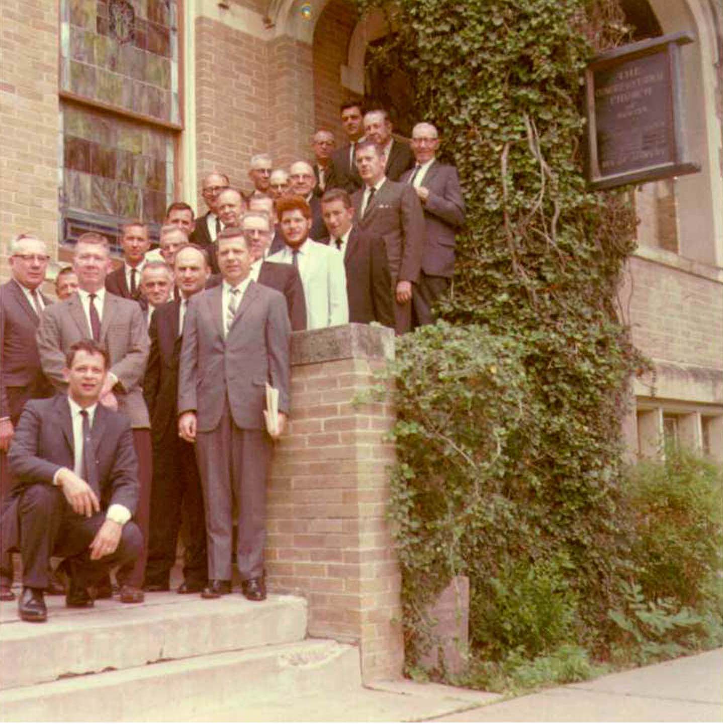 Church Enlistment Committee: John McNeely top right in the ivy. |