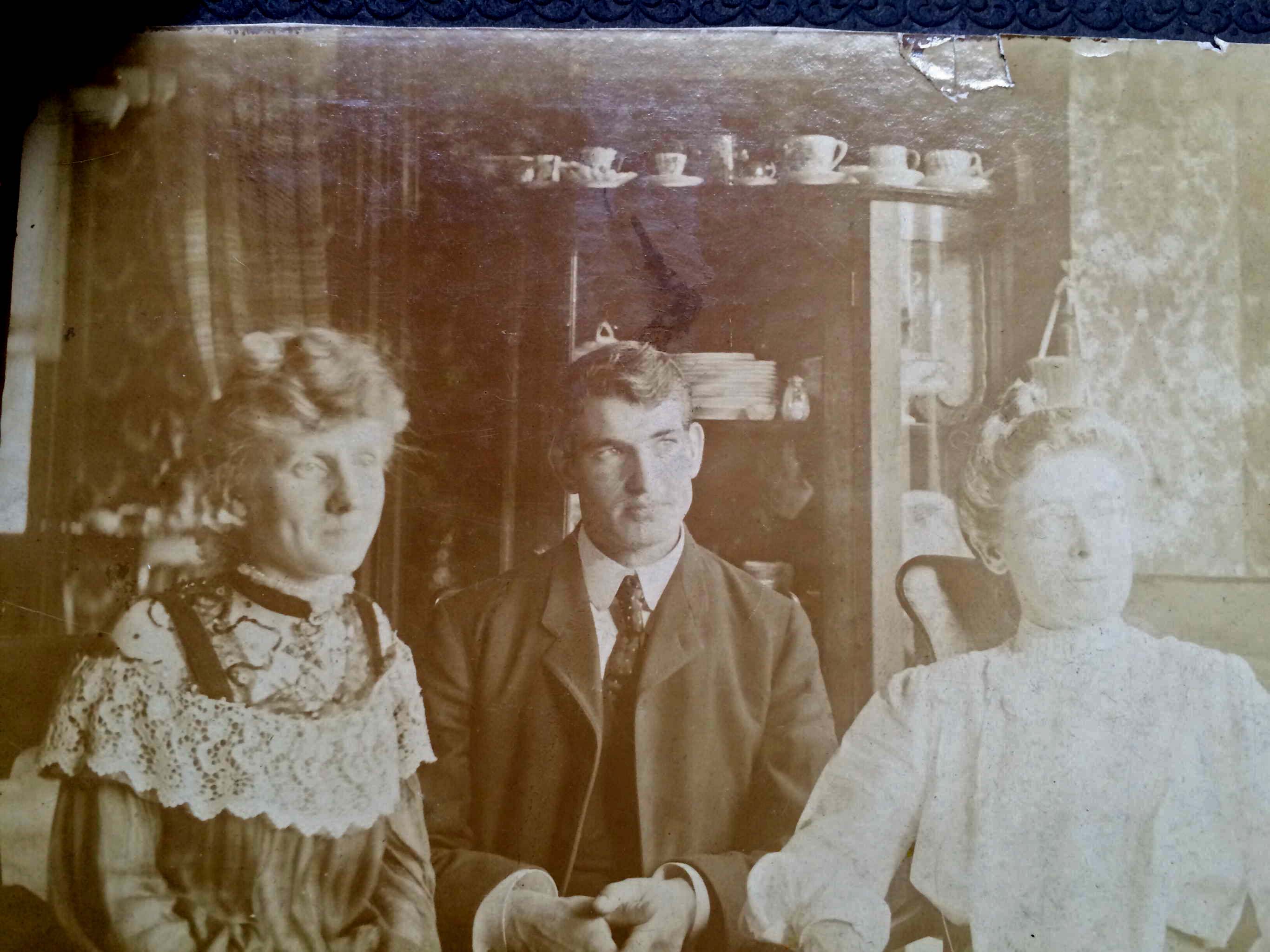 This picture was taken at Donegal. Grandma (Elizabeth "Bess" Jane McNeely? and her brother (Nathaniel Benjamin "Ben" McNeely?). Aunt Bessie (of Janice) and Mrs Macklin who was Janice's father's cousin |