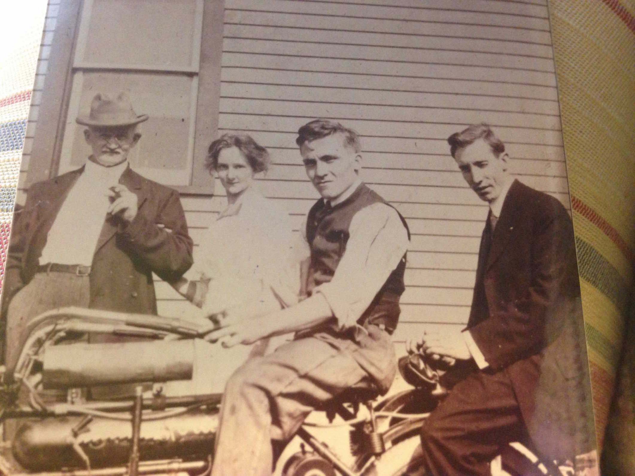 Left to right: Clarence Abel Barrett (father of Edith and Mabel Barrett), Edith Mildred Barrett Cease (sister of Mabel Claire Barrett McNeely) , Warren Ransom Cease (husband of Edith Barrett), and Andrew John McNeely |