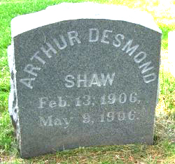 A child, Arthur Desmond Shaw Jr., was born to the couple February 13, 1906. Sadly, he died May 9, 1906, and is buried in the Kensico Cemetery Valhalla, Westchester County, New York, in the Salvation Army plot.