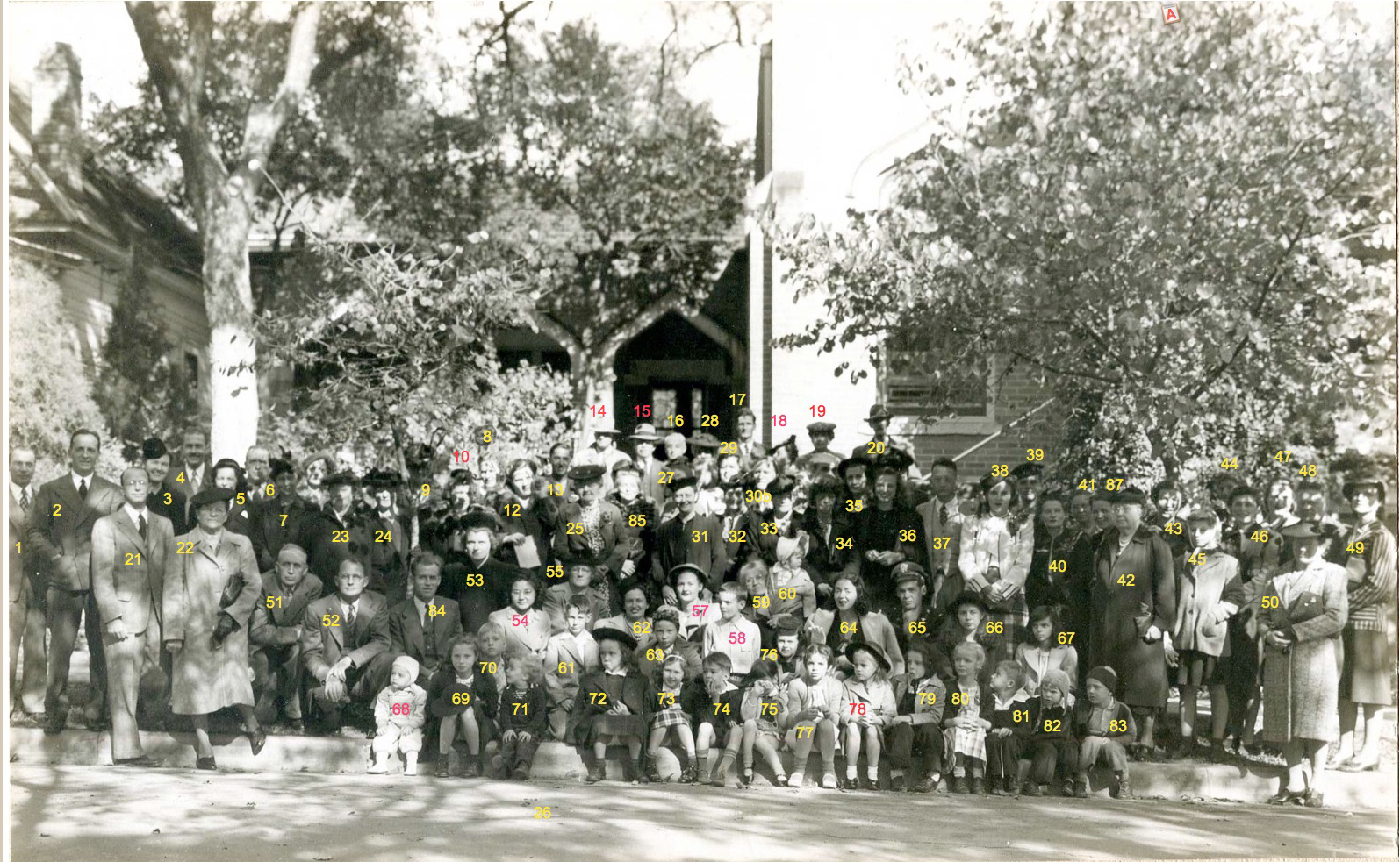 The date of the photo is determined from presence of Ross Reid Maxwell and his brother, Douglass, being in photo, Ross was born late 1941. He appears less than one year old in photograph.