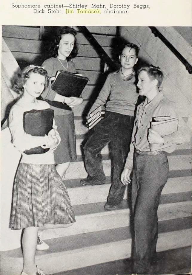 Here we see Jim, front right, in his sophomore year at Lincoln High School. He is chairman of the Sophomore Cabinet.
