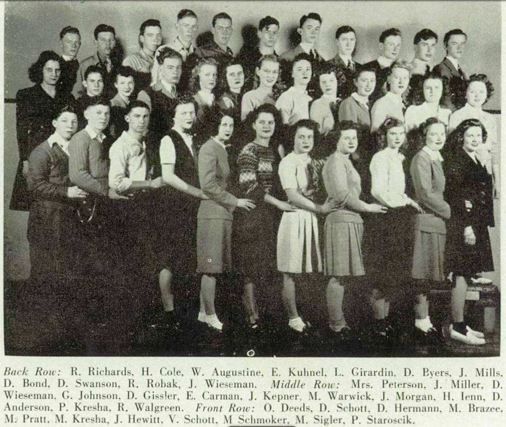 Junior Class, Osceloa High School, 1946. Mary front row, second from end.