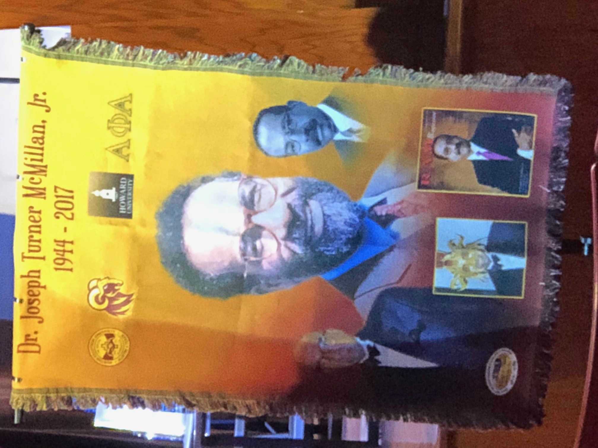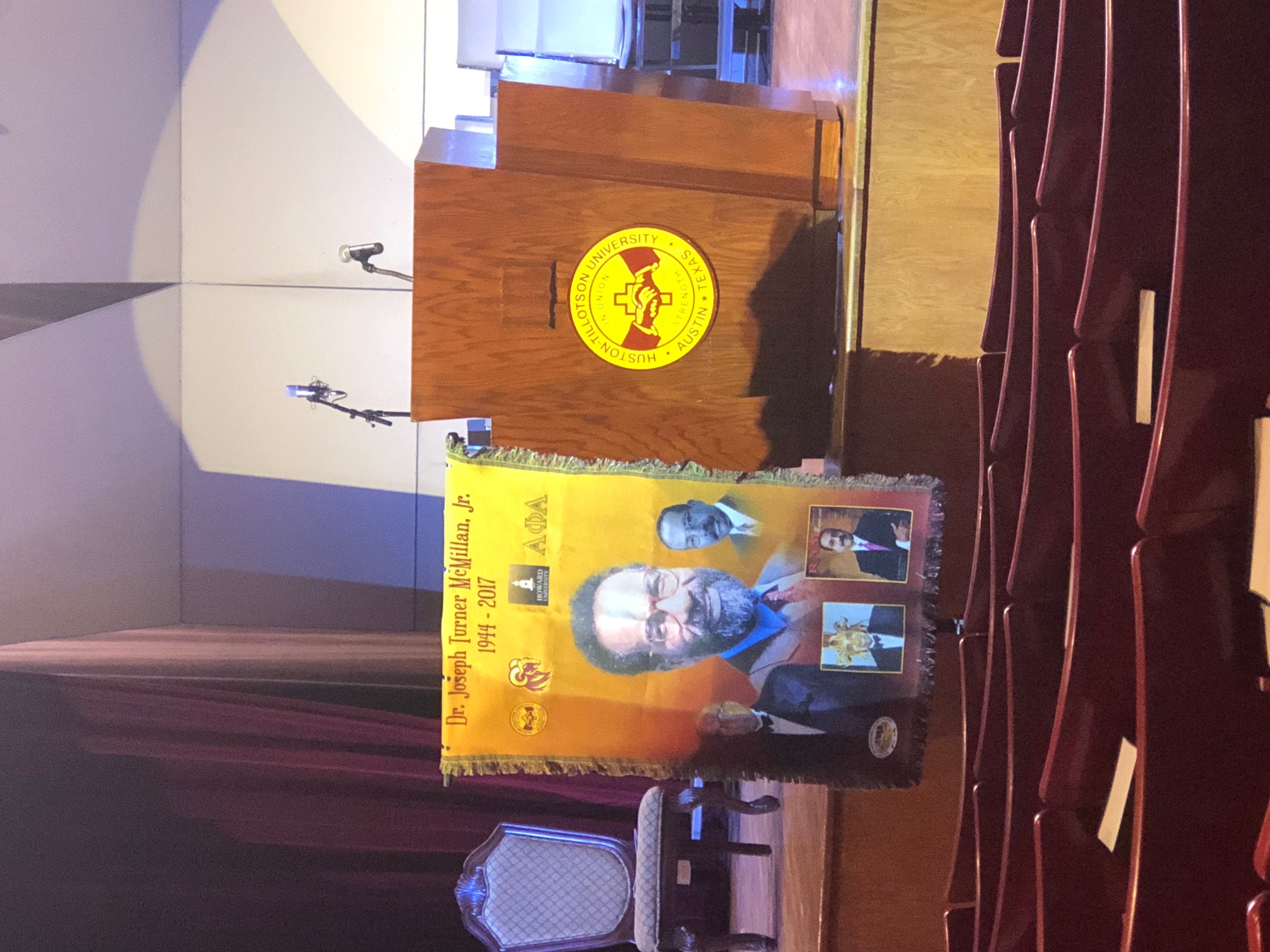 Banner at Celebration of life of Dr. Joseph T. McMillan Jr at Huston-Tilotson Univesity, King-Fears Chapel.