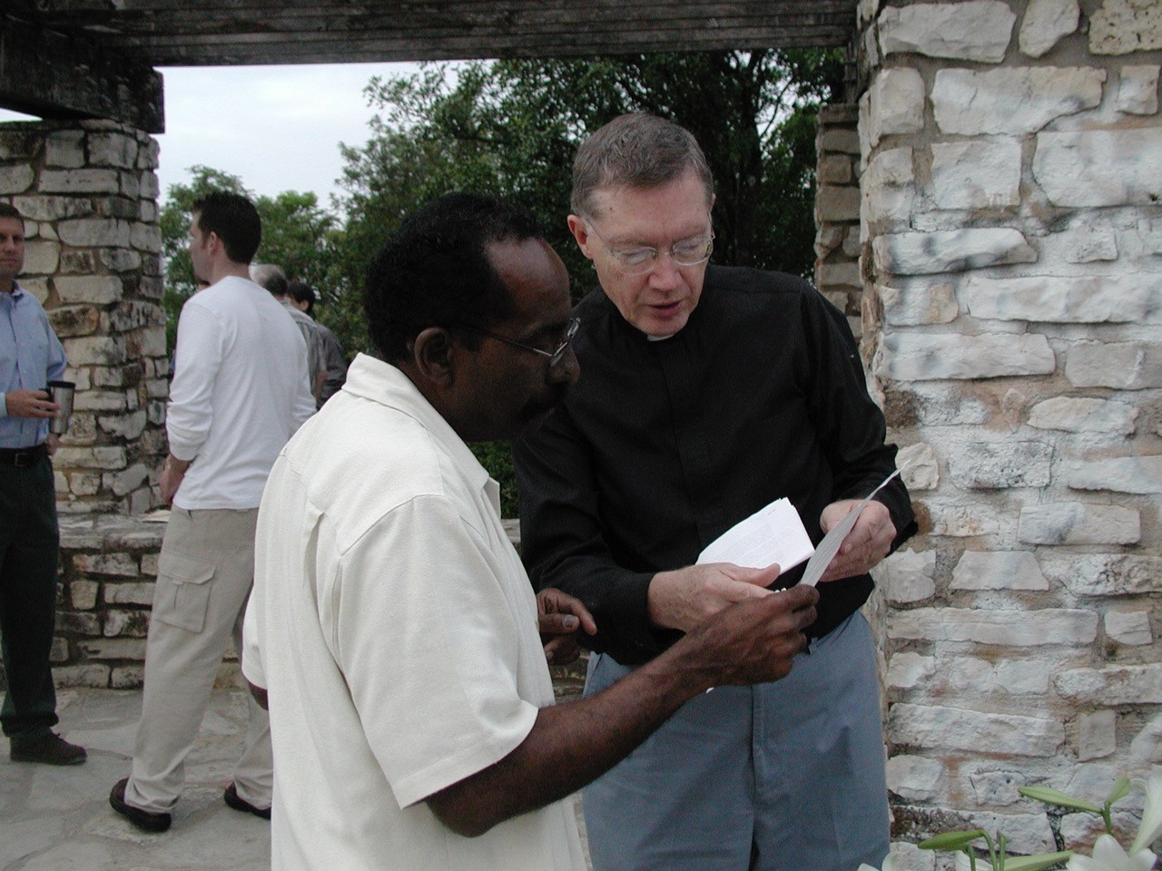 Easter 2001, Joe McMillan and Rich Thompson, interim pastor, at the Easter sunrise service on Mt Bonnell |