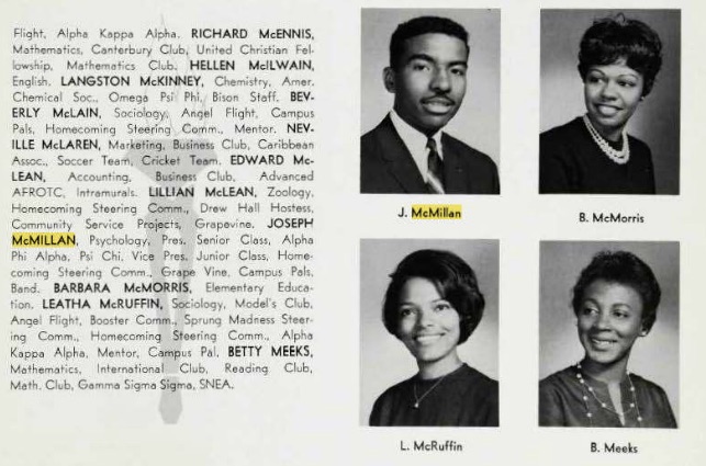 Joseph Turner McMillan, Jr., Howard University yearbook, Bison, 1965 |