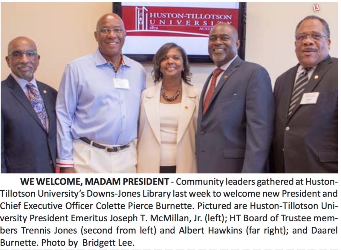"I am honored by this appointment and by the faith that the Board has shown in me. I am doubly honored in having been chosen to succeed John King, an educator who has dedicated his life to this institution and to the cause of Black higher education. I look forward to working with the Huston-Tillotson College trustees, staff, faculty, and students, and with the Austin community in helping the College and the community to grow and prosper. I believe deeply in the role of historically Black colleges, and especially in the future of Huston-Tillotson College, and I hope to be an efiective advocate on its behalf .”