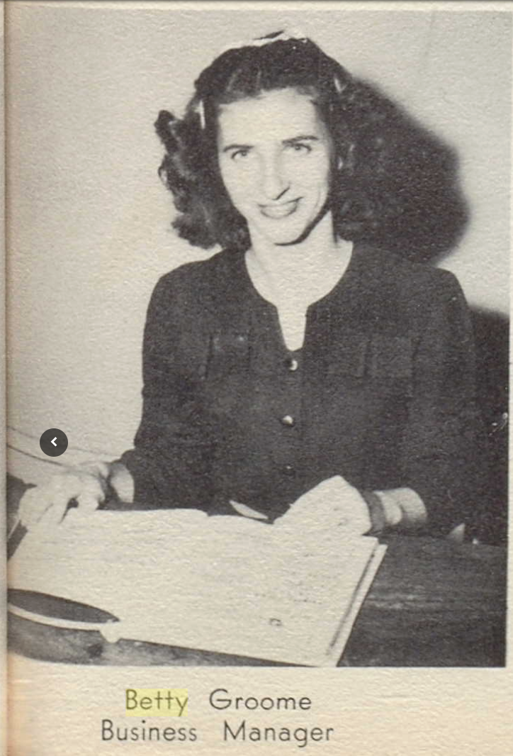Betty Jean Groome (Hartel). She was daughter of William Joseph and Frances Josephine Hopkins Groome. Josephine was daughter of Bud and Carrie Mae Hopkins. Picture from Biloxi High School year book, 1948. Betty Jean married Wallace "Waldo" Hartel. They were the parents of Walley David Hartel pictured above.