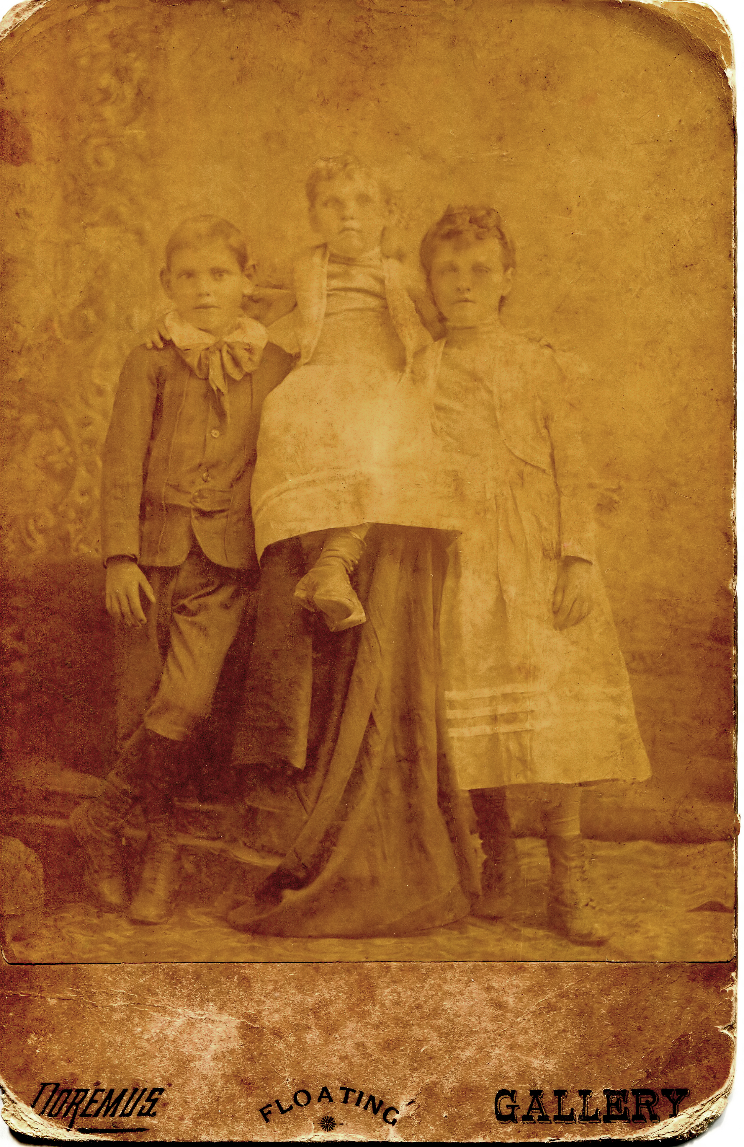 Jacob Christian, Carrie Mae and Mary Sophie Dose, another version. Picture was taken in 1890 aboard the Doremus Floating Gallery photography boat, the Flora. The photographer, John P. Doremus, may have sold the business and the boat by the time of this photo, as he died in January 1890, while in Mississippi. (Photo generously given to me by Kimberly Oakes, wife of my cousin, Bill Oakes, whose father, William Warren Oakes had the picture originally. The back says "Sophie Dose, Auntee Dose and Uncle Dose. Jacob and Sophie were twins.